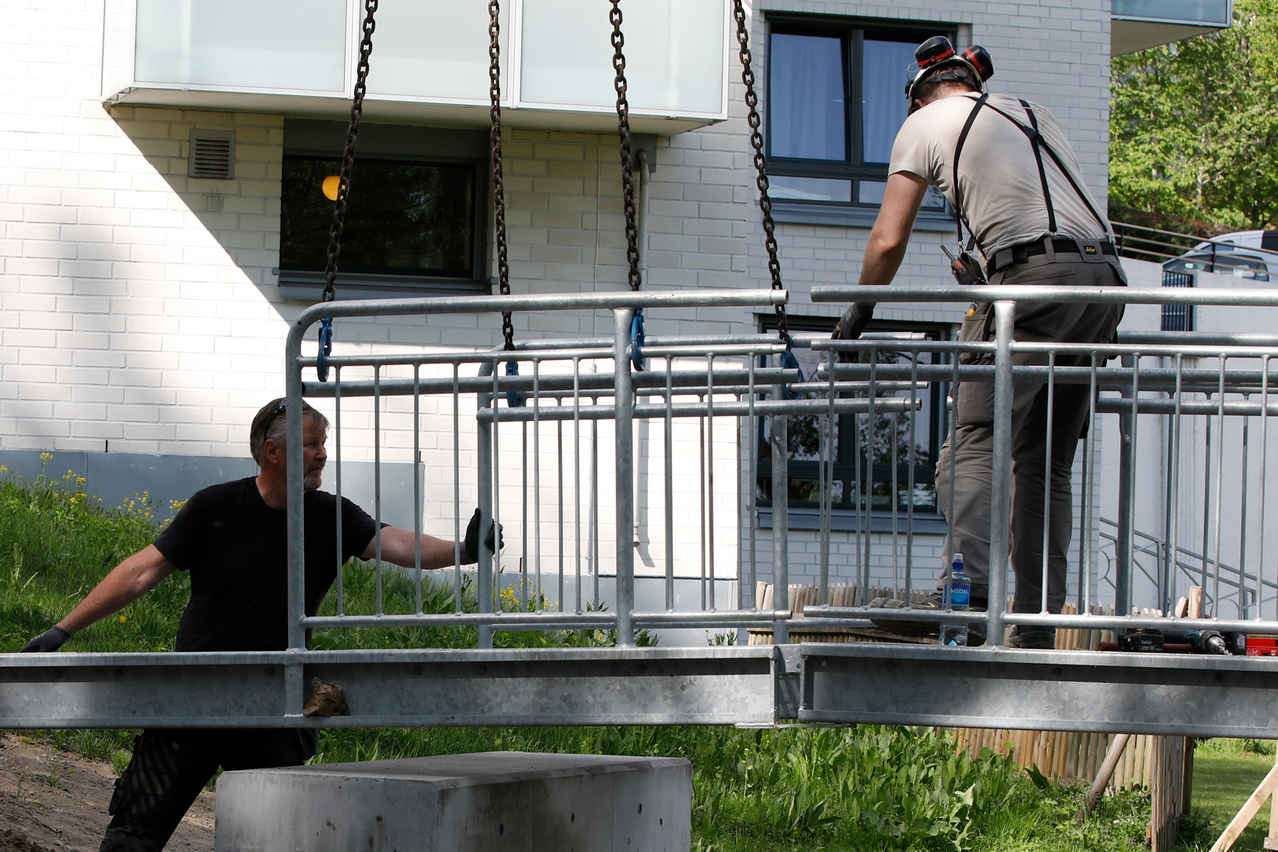 50 Meter lange Laufbrücken zum Krankenhaus von Danderyd