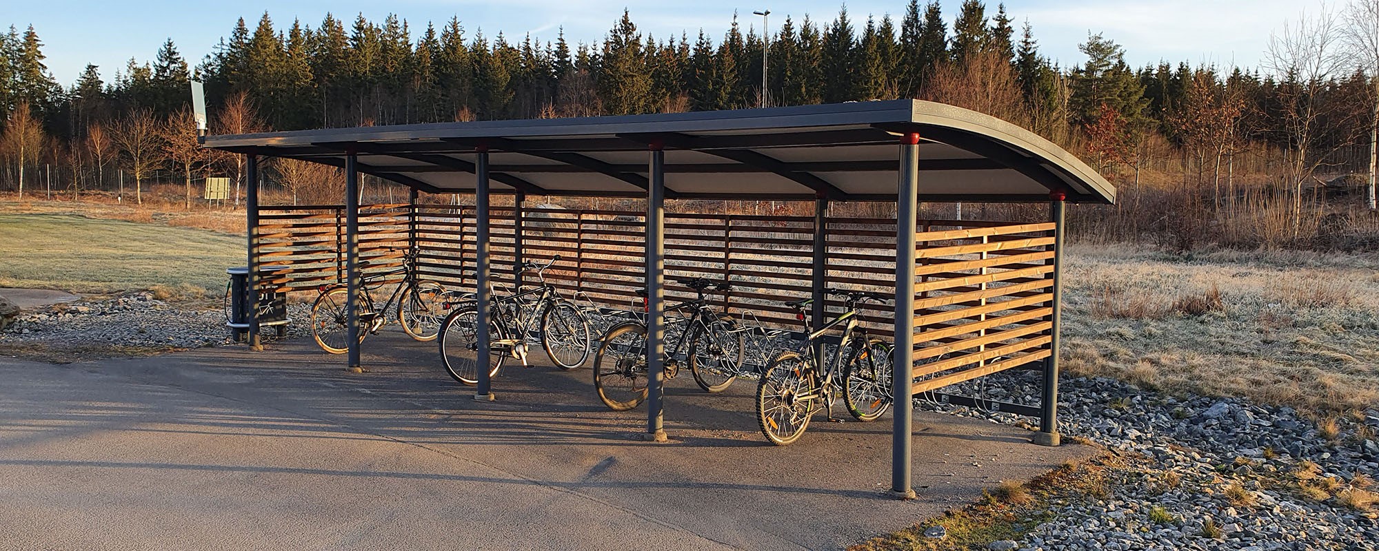 Das am Hauptsitz des Unternehmens in Schweden entwickelte Modell Ymer, erlaubt mit seinem modularen System bei festem Giebelmaß eine beliebige Anreihung von Sektionen, um möglichst wirtschaftlich die gewünschte Anzahl an Stellplätzen zu ergeben. Neben der einreihigen Ausführung, steht auch das beidseitig zu bestückende Ymer Dubbel zur Verfügung. Weitere Nutzungsvarianten sind die Servicestation für Fahrräder mit viel Sonderausstattung und Bushaltestellen für den öffentlichen Bereich. Die seit vielen Jahren erprobte Modellreihe Tellus ergänzt das Programm als geschlossene Einhausung, ebenfalls als modulares System. Mit einer Nutzung als Fahrrad- und Gerätehaus oder Recyclingstation, ist Tellus in Variationen auch als Raucherunterstand, Aluminium-Glas-Pavillon oder Gewächshaus erhältlich. Für alle Modelle bietet sich verschiedenes Zubehör an, für die überdachten Modelle besteht zumeist eine integrierte LED-Beleuchtung zur Auswahl, sowie die gern gewählte Gründachoption.