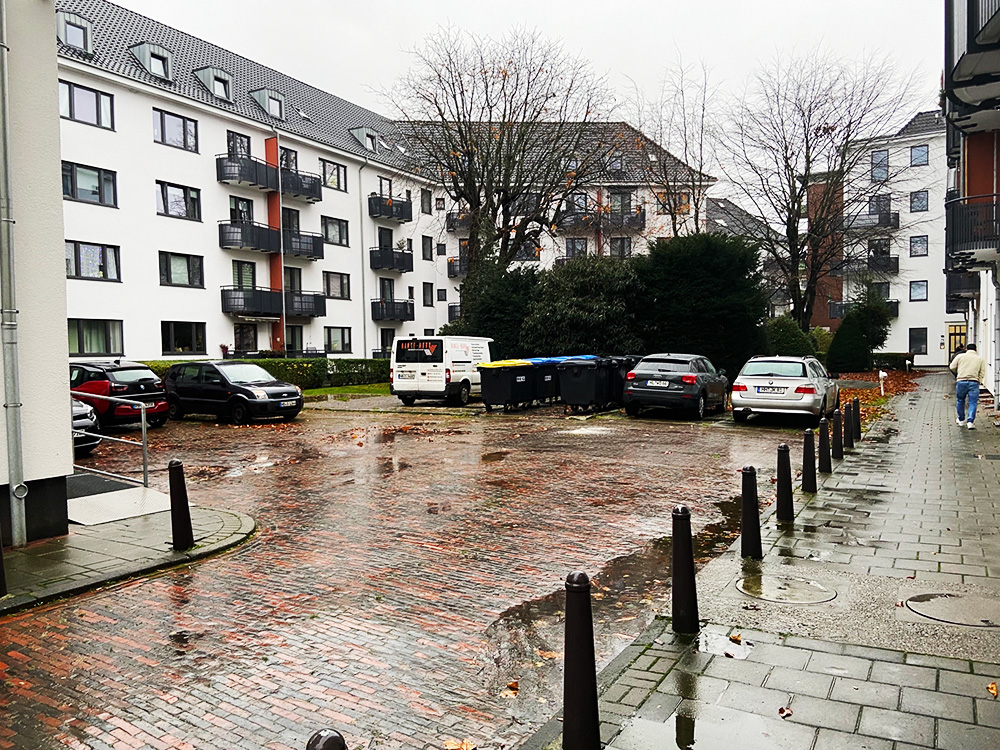 Was wäre hier besser geeignet, als ein von mehrgeschossigen Wohngebäuden gefaßter Innenhof direkt in der Innenstadt?
