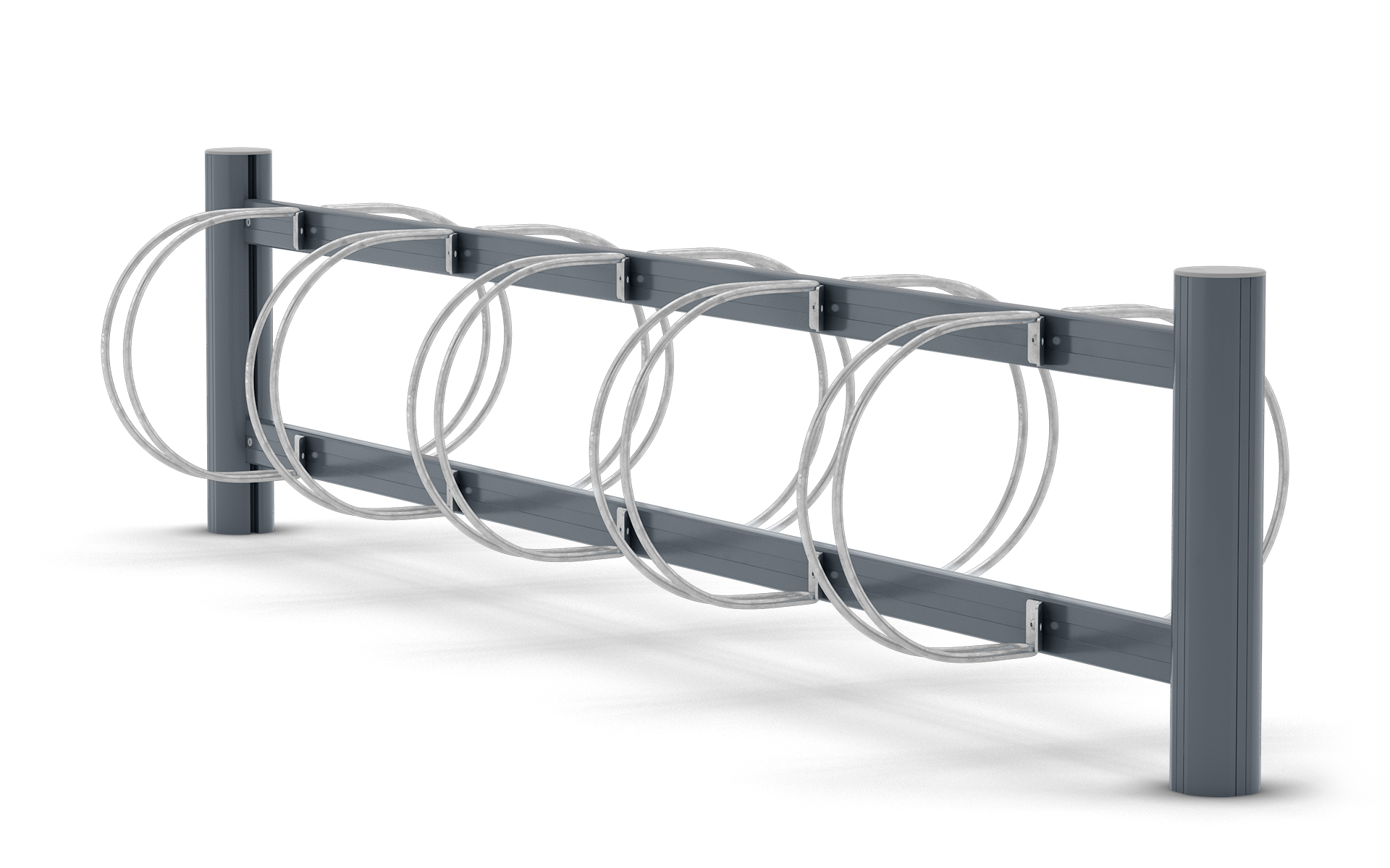 Eine einfache Fahrradabstellanlage, damit Fahrräder ordentlich abgestellt werden können. Ist in zwei Standardgrößen mit 2000 mm oder 2500 mm c/c erhältlich. Die Verankerung am Boden erfolgt mit Betonblöcken oder Fußplatte für eine gegossene Platte.