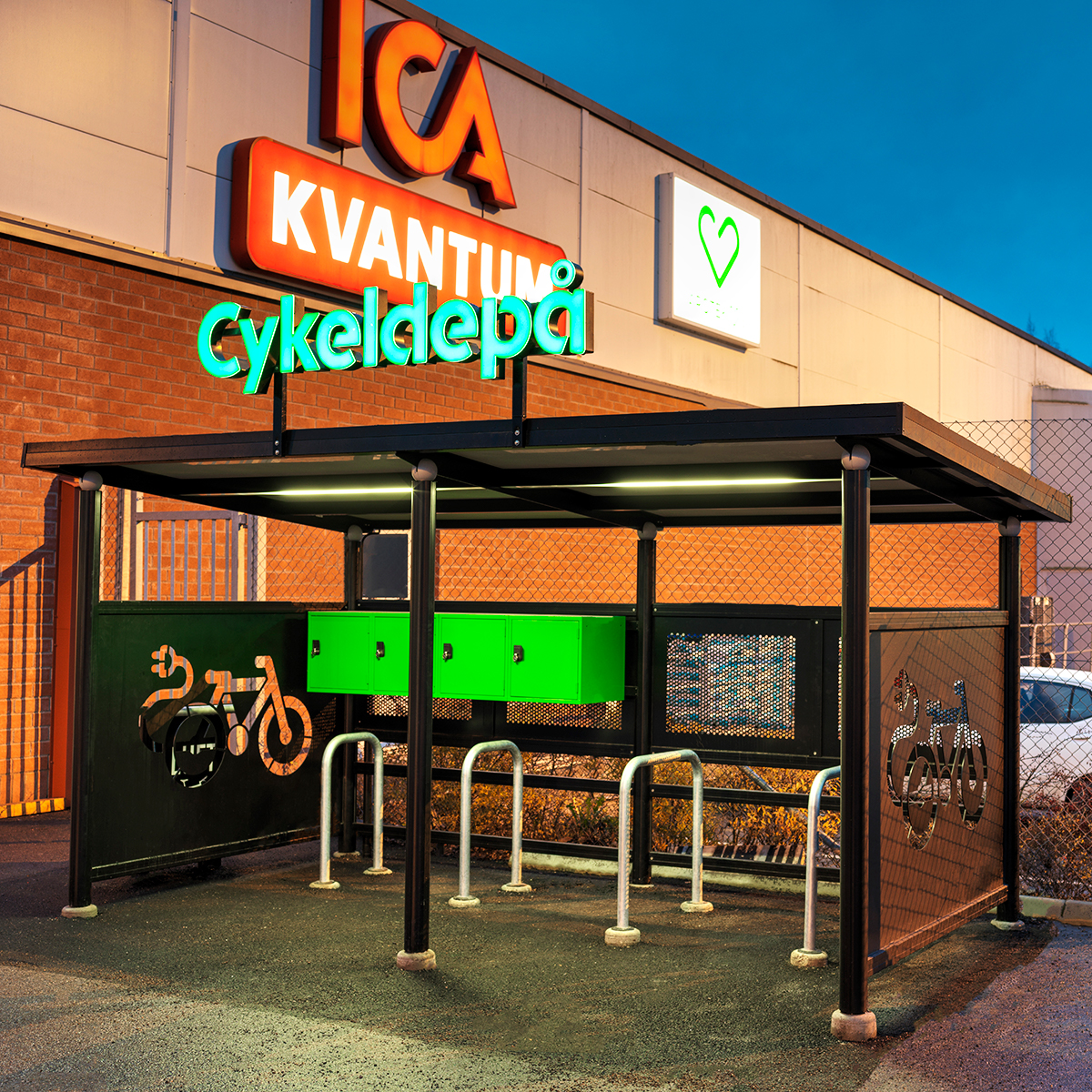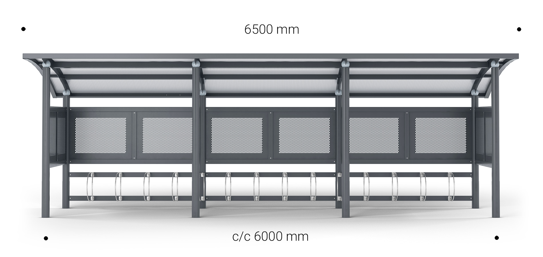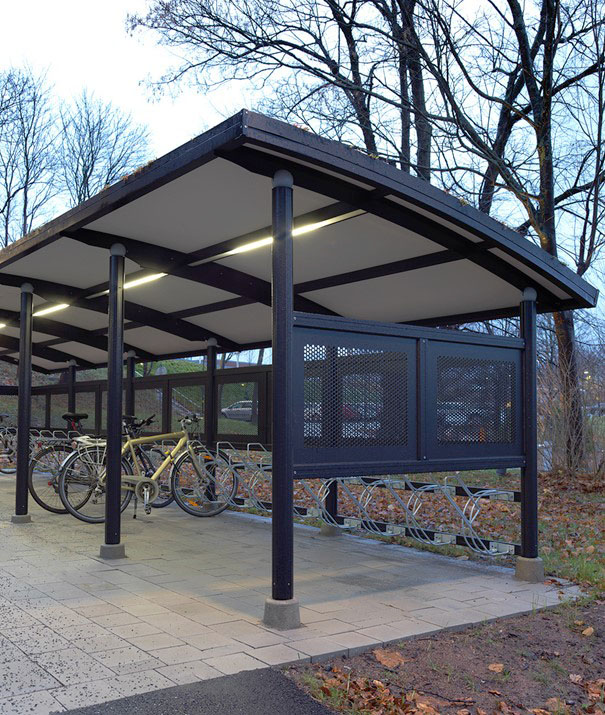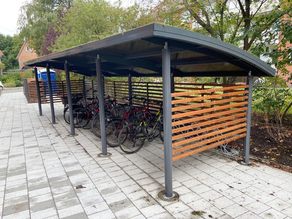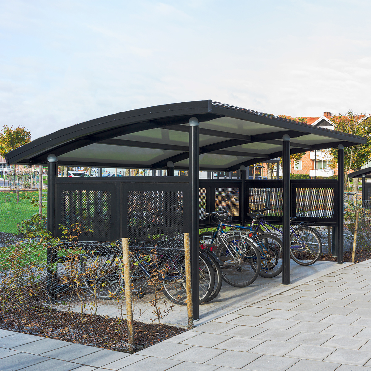 Der Fahrradunterstand Ymer bietet in der kleinsten Größe Platz für neun Fahrräder und jeder weitere Abschnitt von zwei Metern bietet Platz für weitere fünf Fahrräder.