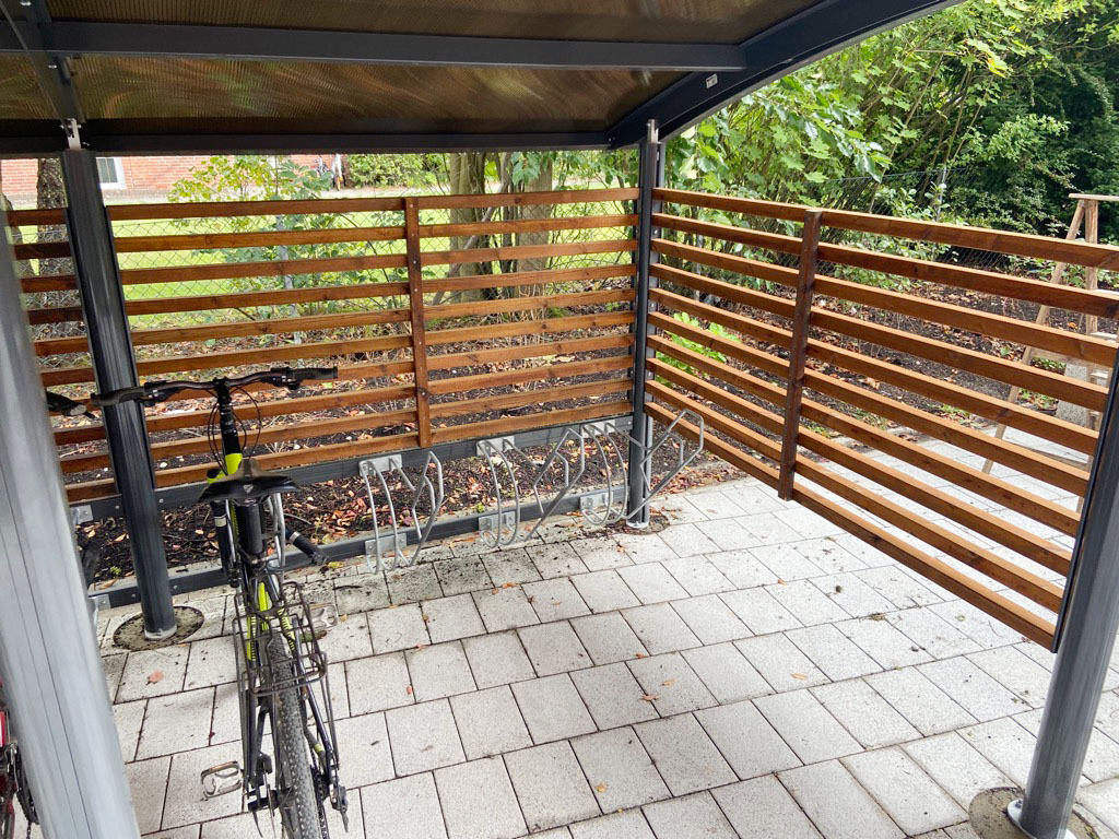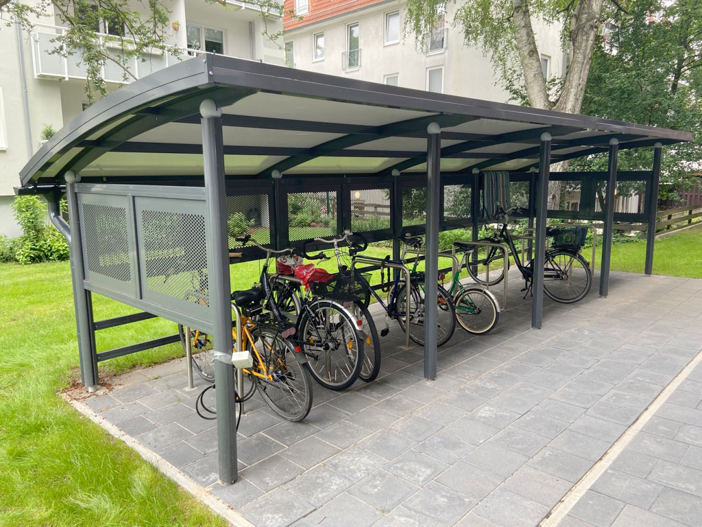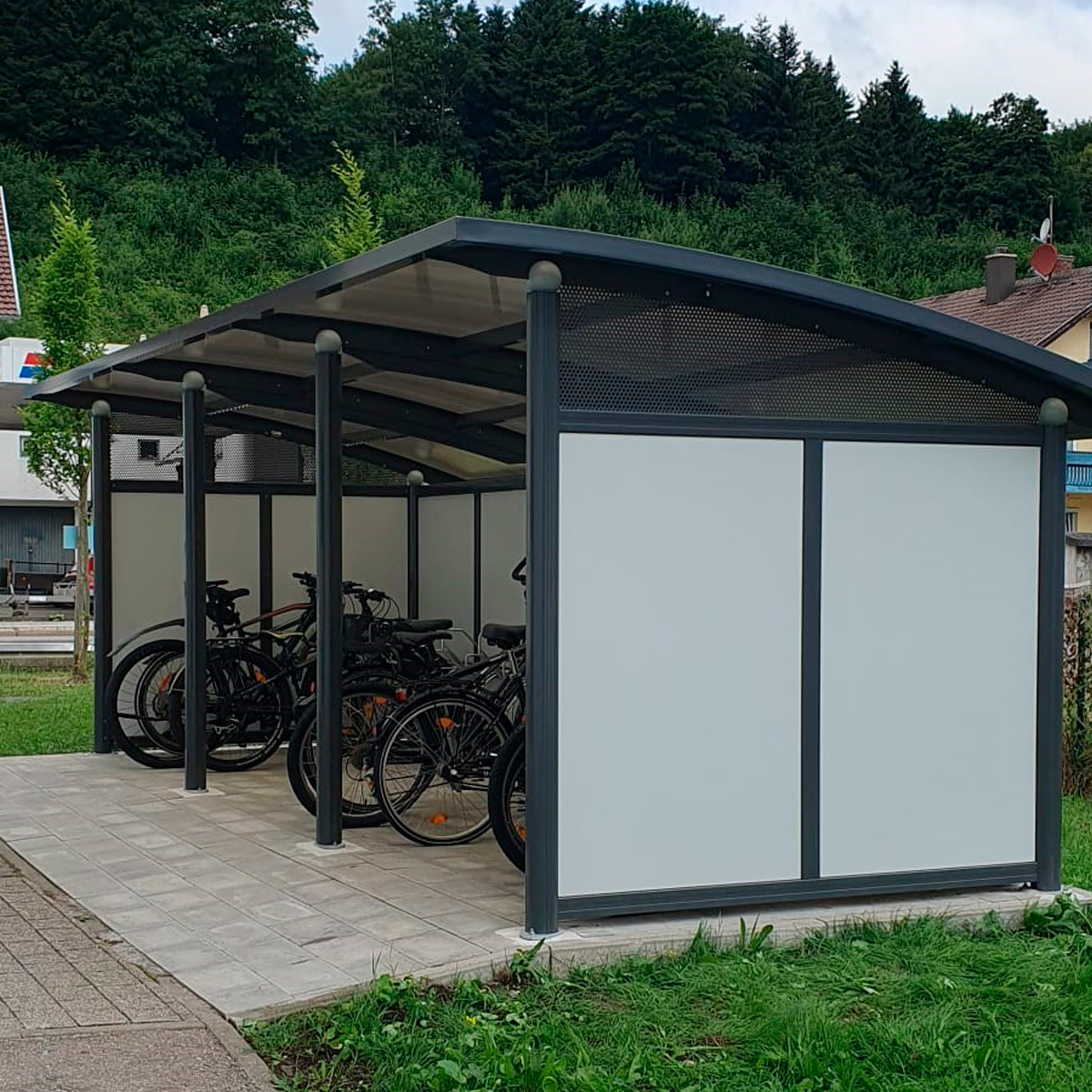 Der Fahrradunterstand ist in einer Standardausführung erhältlich, die je nach Bedarf mit unterschiedlichen Optionen angepasst werden kann. Die Optionen müssen zusammen mit dem Fahrradunterstand bestellt werden.