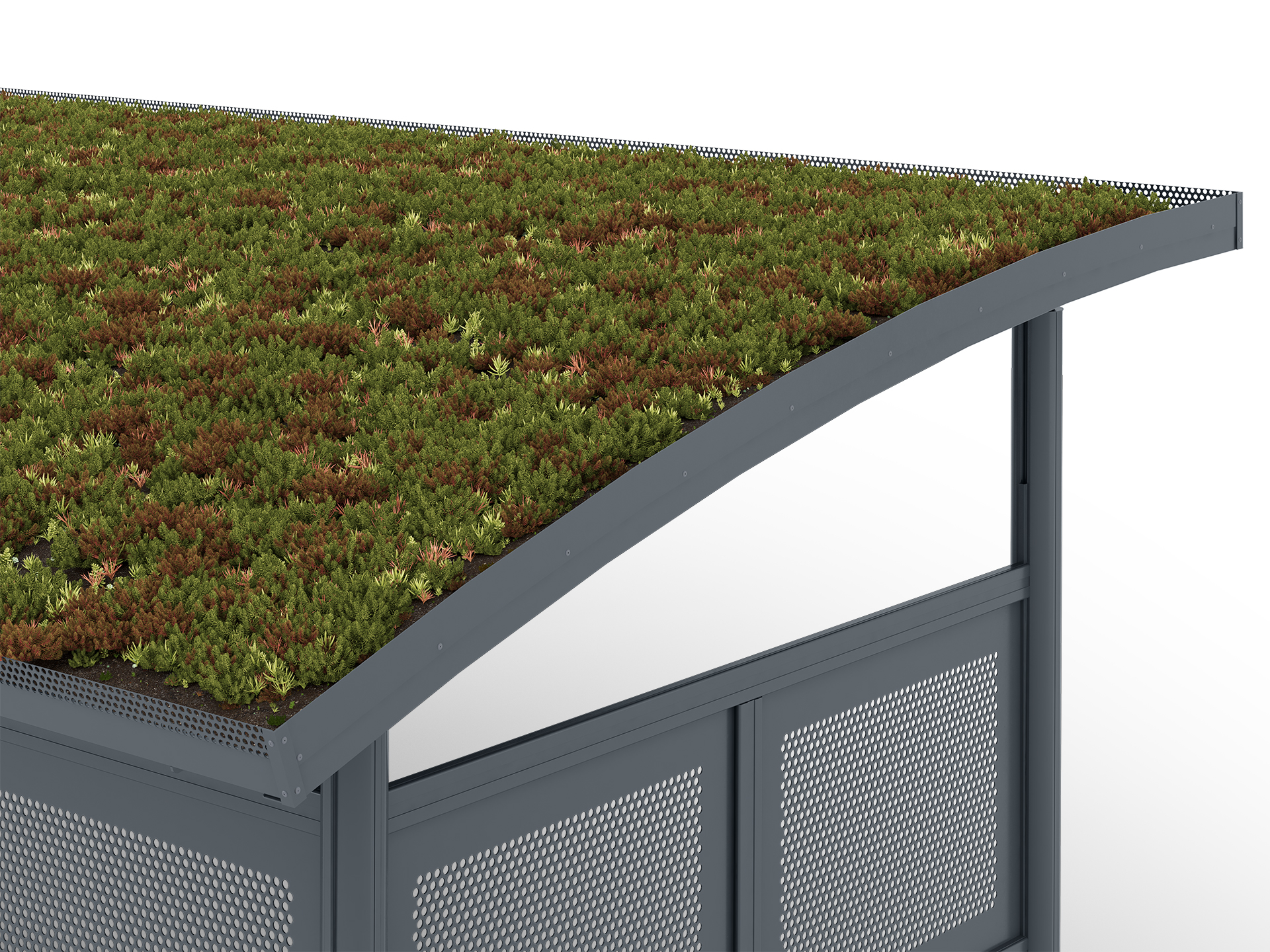 Auf Wunsch können unsere Recyclingstationen/Abstellschuppen mit Sedumdächern versehen werden. Sedum ist eine mehrjährige Fettblattpflanze, die Trockenheit und Temperaturschwankungen deutlich besser aushält als herkömmliche Gräser. Daher eignet sich Sedum hervorragend zur Dachbegrünung.