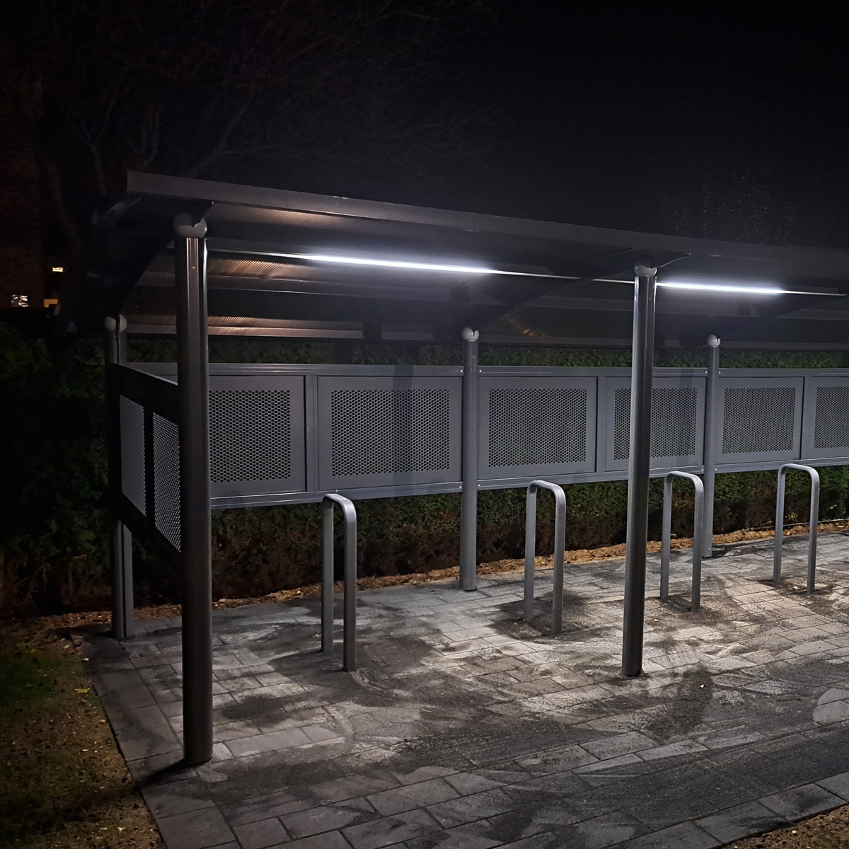 Wir haben eine integrierte LED-Beleuchtung entwickelt, die sowohl energieeffizient als auch kostengünstig ist, da keine zusätzlichen Leuchten in den Abstellschuppen benötigt werden.