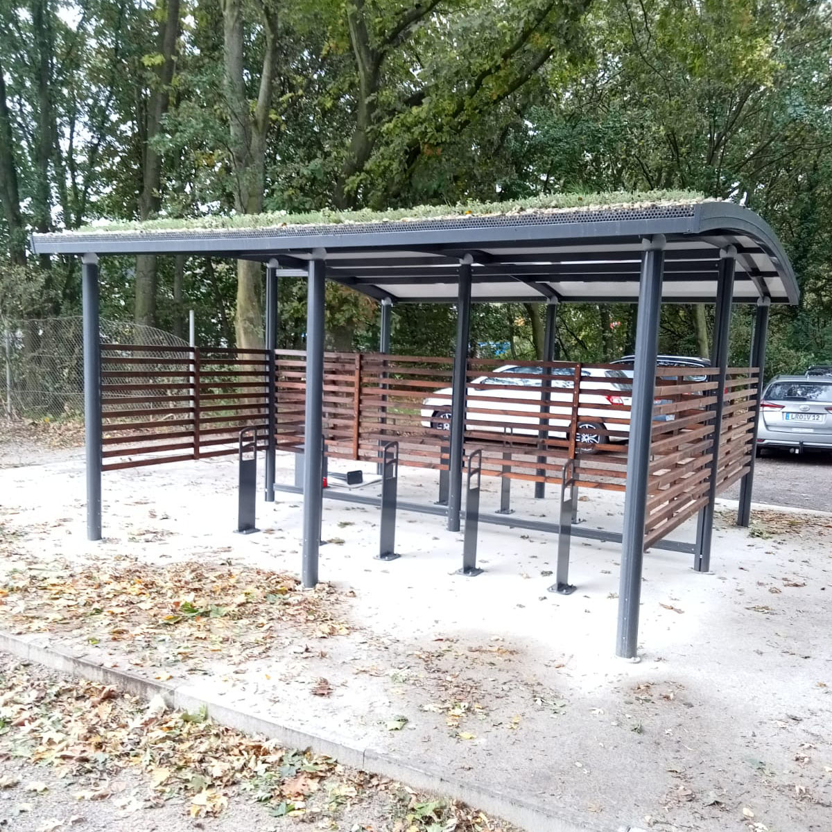 Der Fahrradunterstand ist in einer Standardausführung erhältlich, die je nach Bedarf mit unterschiedlichen Optionen angepasst werden kann. Die Optionen müssen zusammen mit dem Fahrradunterstand bestellt werden.
