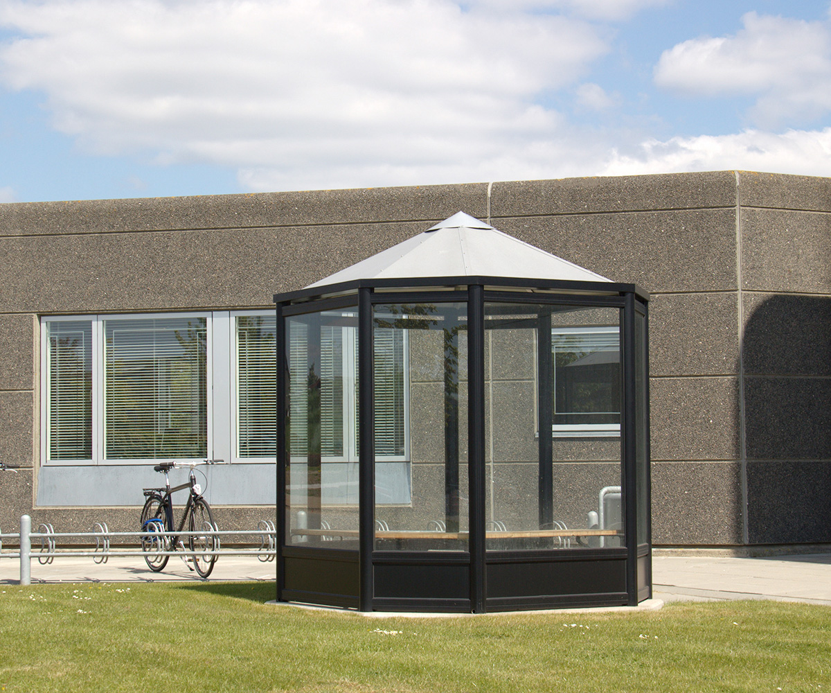 Unsere Raucherkabinen bestehen aus ausgewählten Materialien mit einer harten und strapazierfähigen Oberfläche und gehärtetem 8-mm-Glas, das z.B. mit einer Hochdruckwäsche schnell gereinigt werden kann. Abgesehen davon, dass Aluminium sowohl recycelbar als auch umweltfreundlich ist, rostet es nie. Alle unsere Lackfarben sind UV-beständig und sehen Jahr für Jahr toll aus. Wir bieten eine nahezu wartungsfreie Raucherraumlösung mit extrem langer Lebensdauer, die das ganze Jahr über in allen Klimazonen draußen stehen kann.