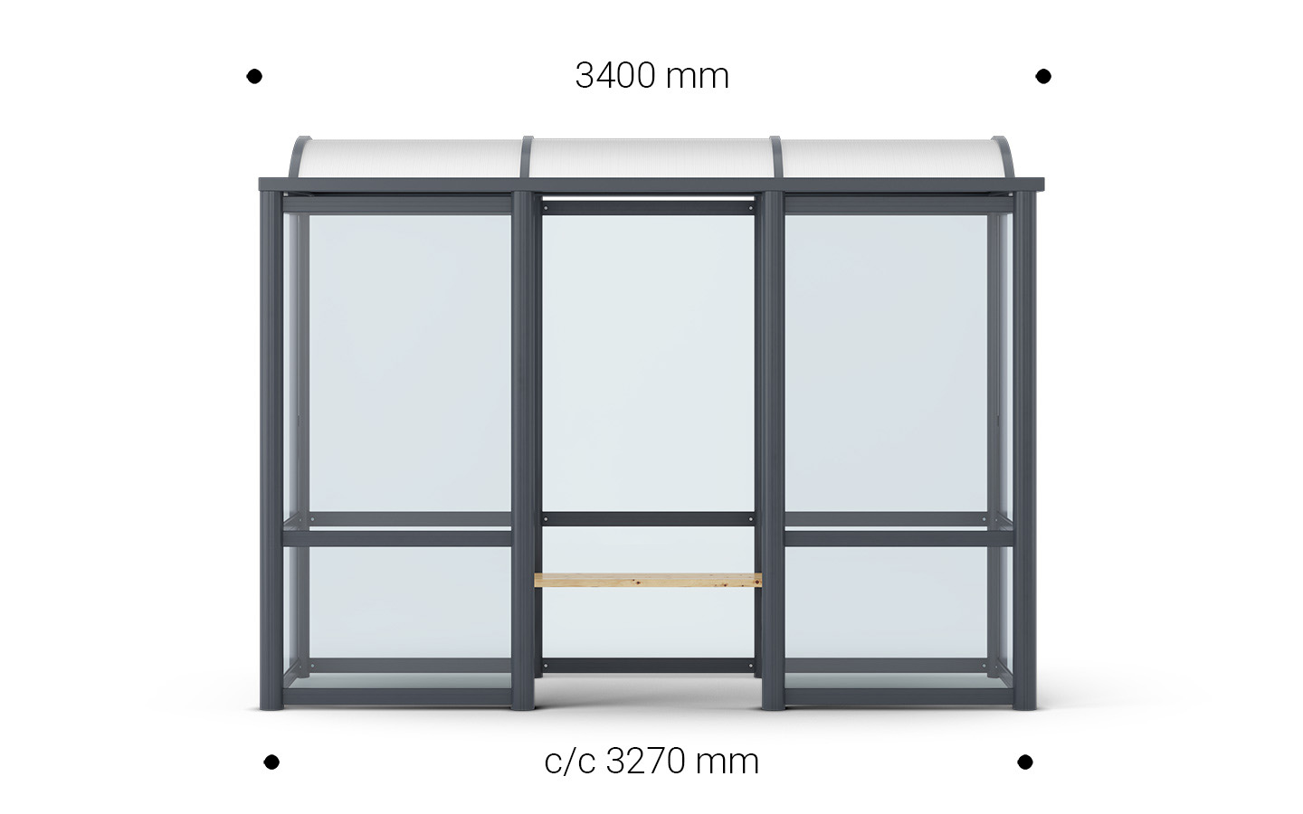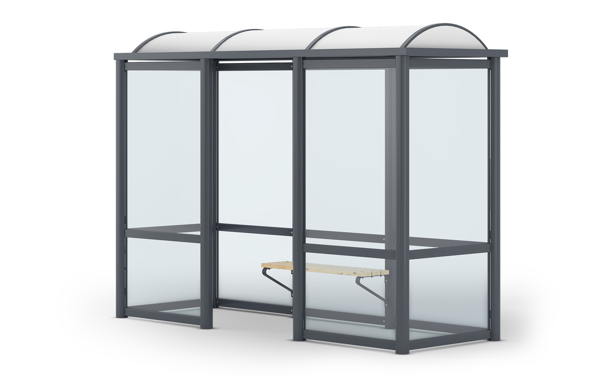 Arcus kann zwei- oder dreiteilig bestellt werden. Ein Abschnitt hat jeweils 1090 × 1090 mm. Die Raucherkabine hat eine Breite von 1090 mm.