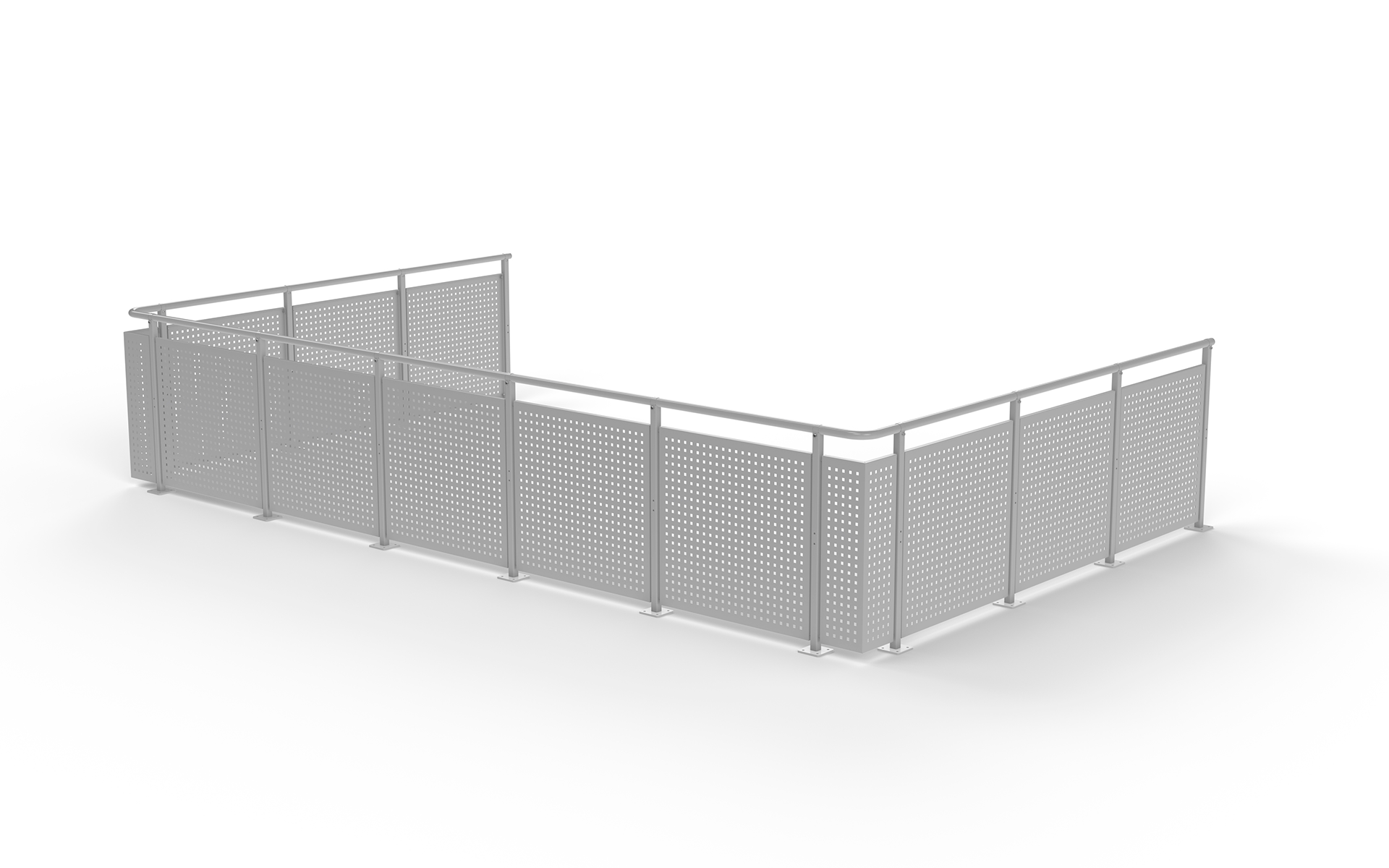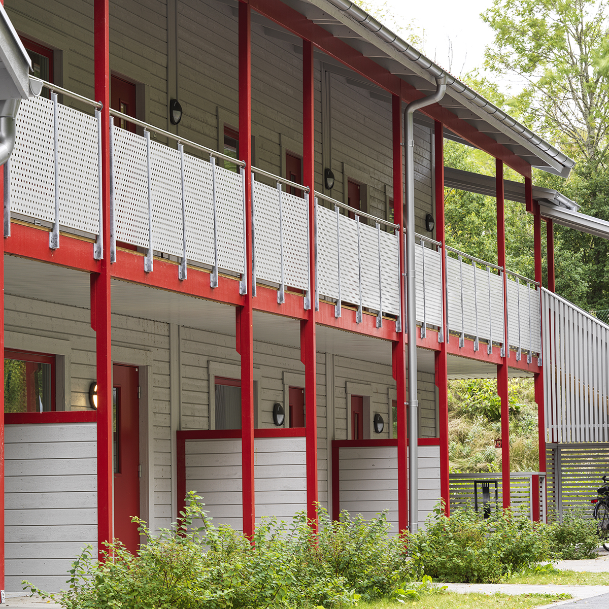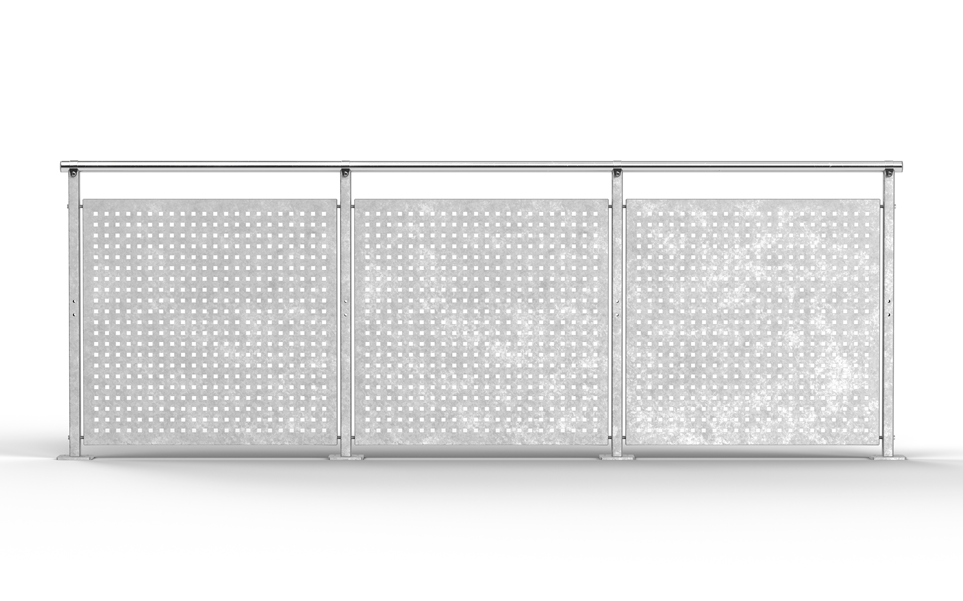Geländer aus dichtem oder perforiertem Blech. Kindersicher mit maximaler Öffnungsweite 100 mm.