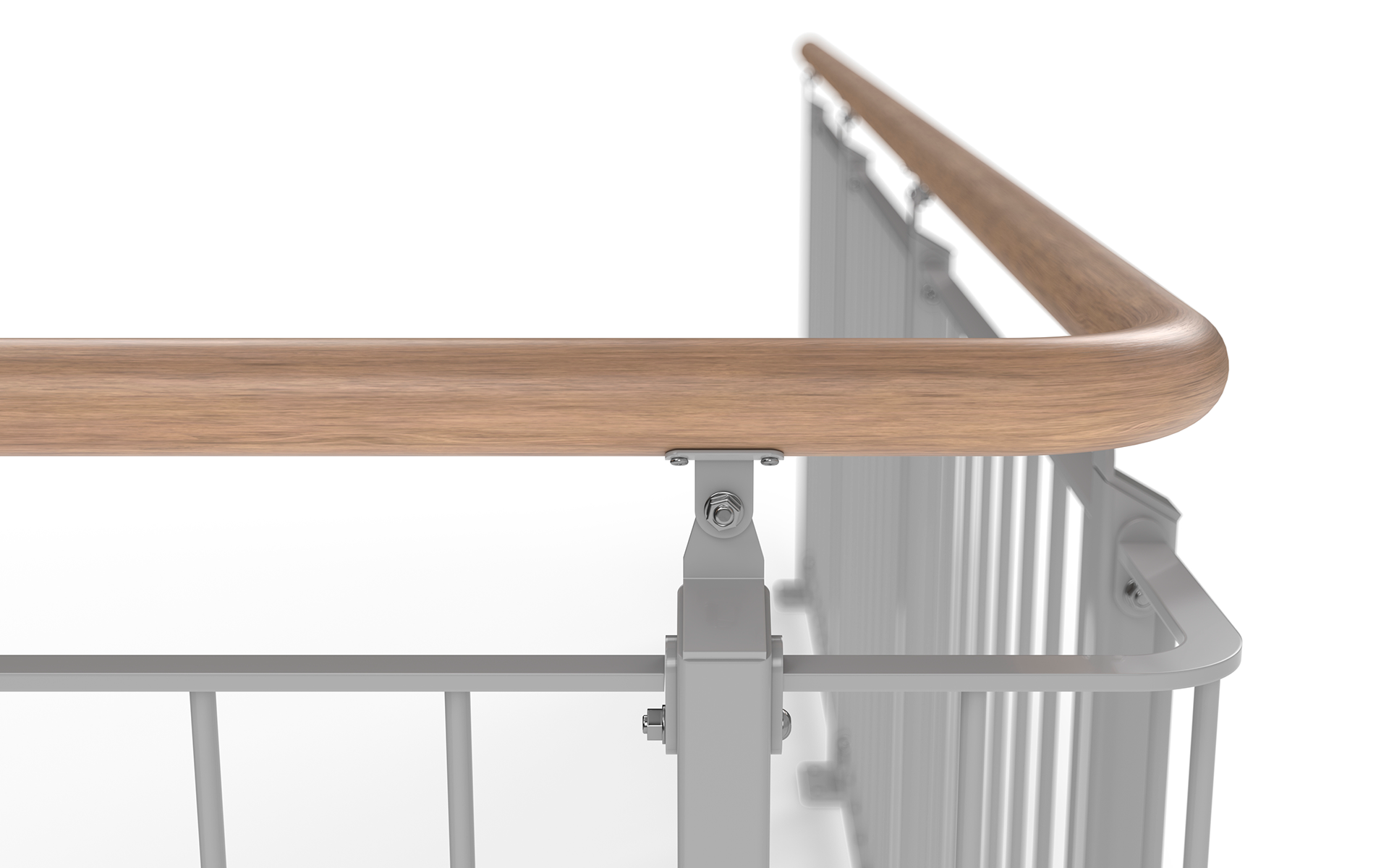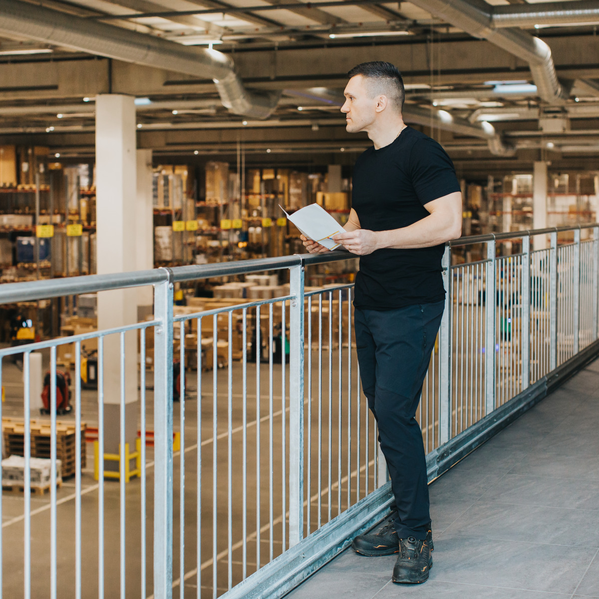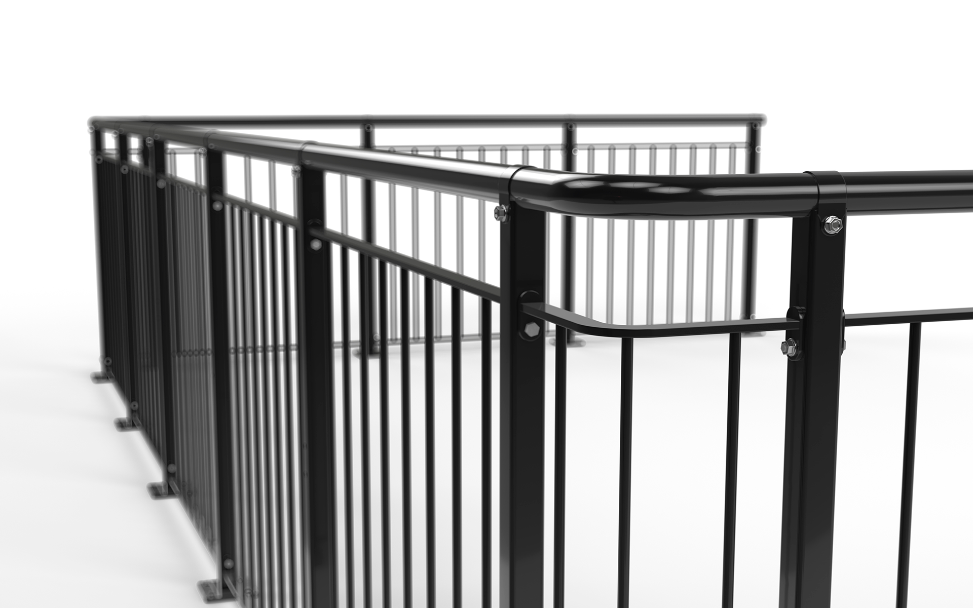 Das industrielle Geländer wird mit einer Knieleiste versehen. Es gilt nicht als kindersicher.