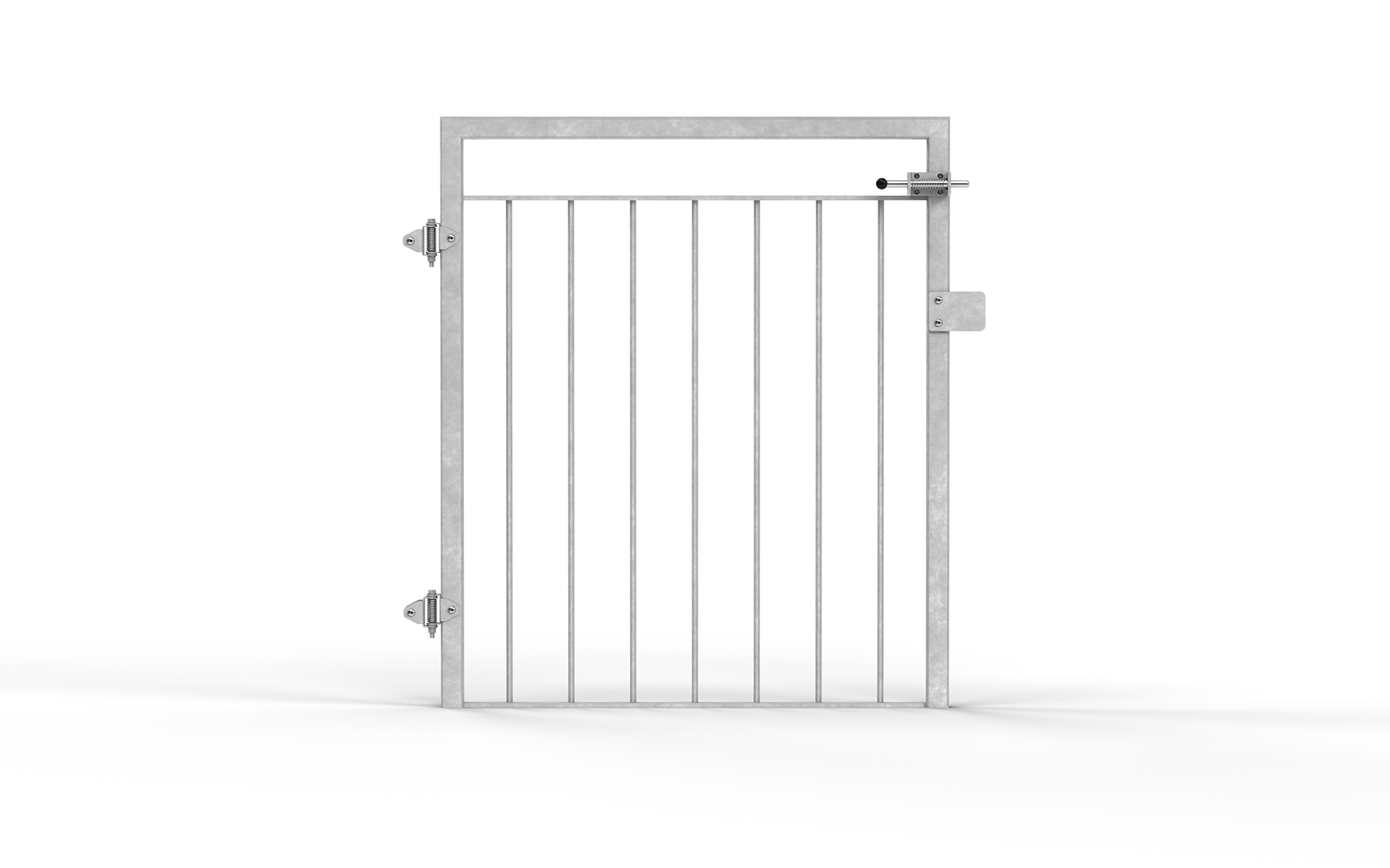 Bei Bedarf, besteht die Möglichkeit Öffnungen zwischen den Geländersektionen mit einem Tor zu verschließen. Max. 1000 mm. Die Tore sind auf Anfrage für Rechts- oder Linksanschlag erhältlich.