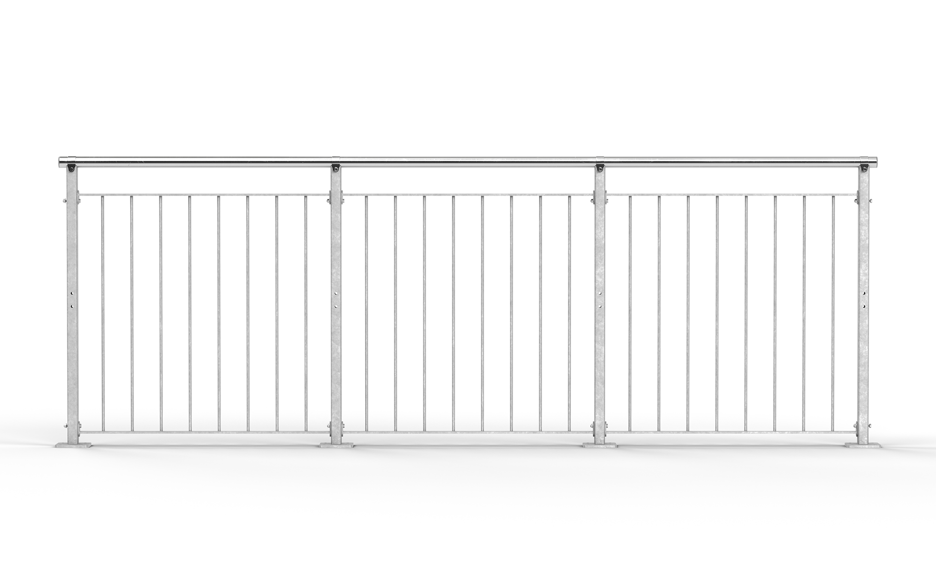 Teile der Sektionalgeländer in Standardausführung werden im eigenen Werk nach SS-EN-ISO 1461 Feuerverzinkt. Das Verfahren sorgt für einen ausreichend starken Korrosionsschutz und langlebigen Gebrauch.