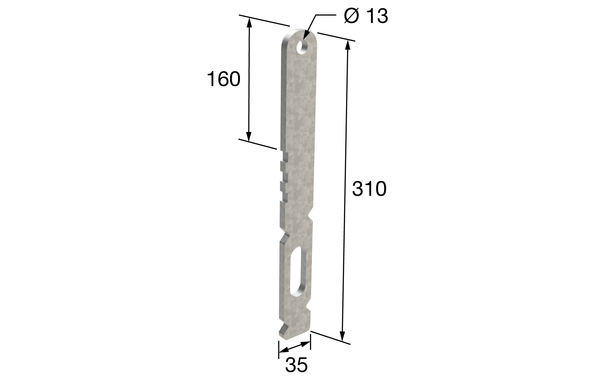 Zum Festschrauben auf z. B. Holz oder Beton. Kann auch angeschweißt werden.