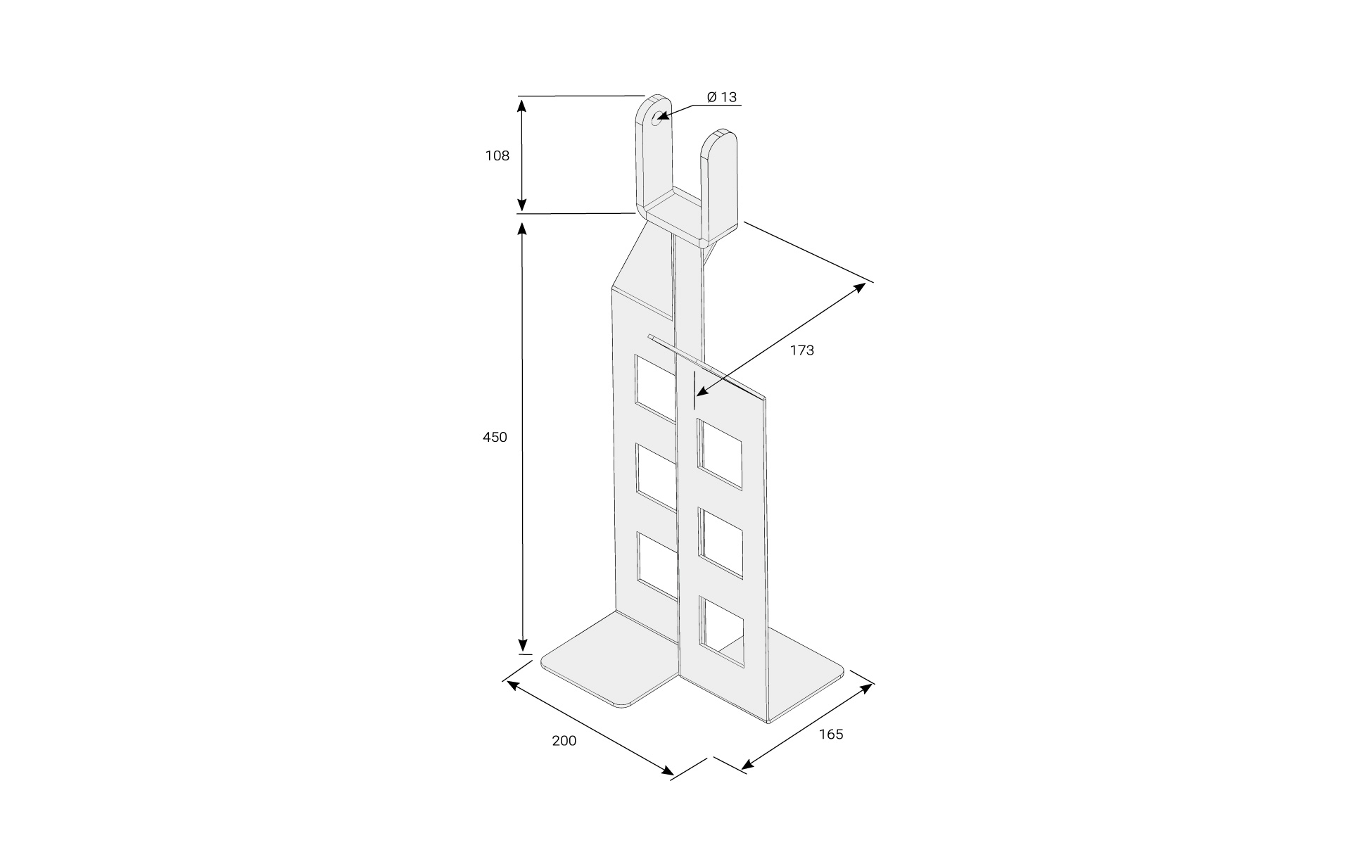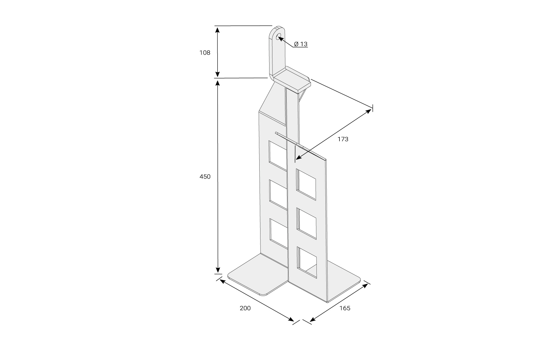 Die Halterung besteht aus gebogenem Blech und ermöglicht eine sehr stabile Befestigung beim Eingraben in den Boden mit Kies oder Schotter als Verfüllmaterial. Die Halterung kann auch für eine Einbettung in Beton verwendet werden.