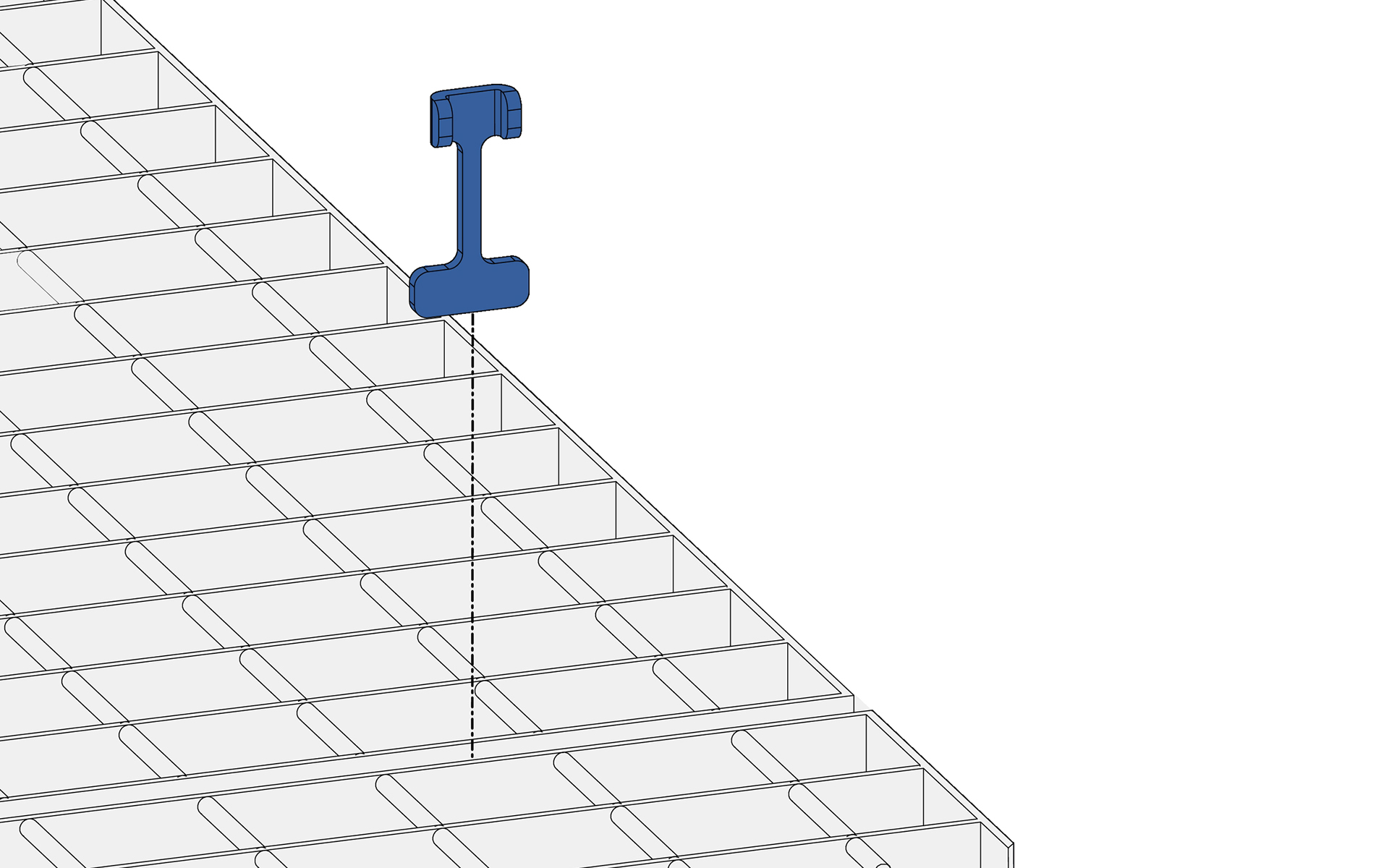 Die Befestigungselemente für Schlitzgitterroste sind sowohl als Komplettsatz als auch als separate Elemente erhältlich. Die Befestigungselemente können auch für leichte Gitterroste vom Typ LDS verwendet werden. Die Standardschachtel für Befestigungselement-Komplettsätze enthält 100 Elemente.