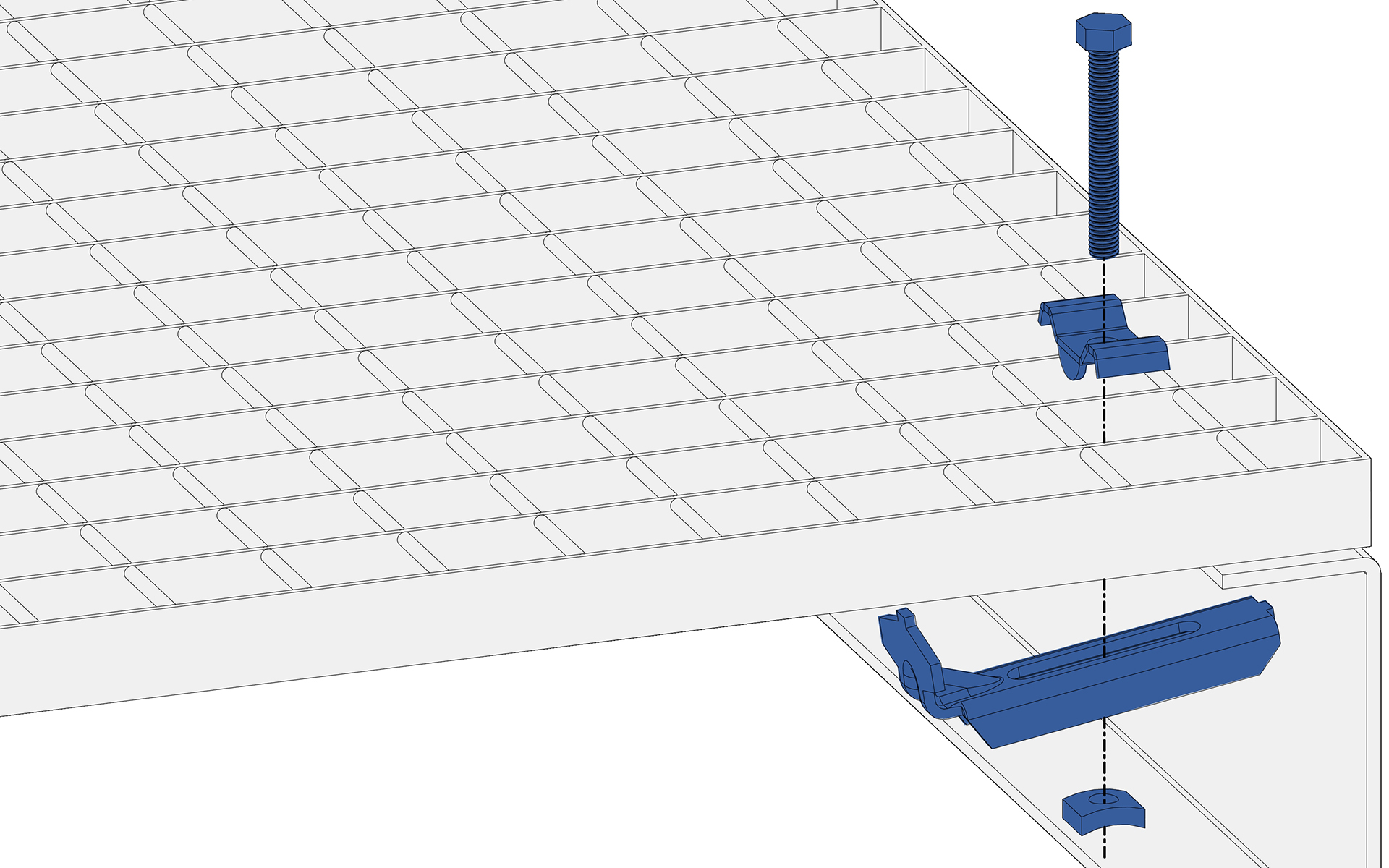 Montageanleitung: Befestigung eines Gitterostes mit Befestigungsklammer komplett