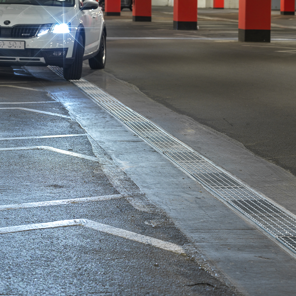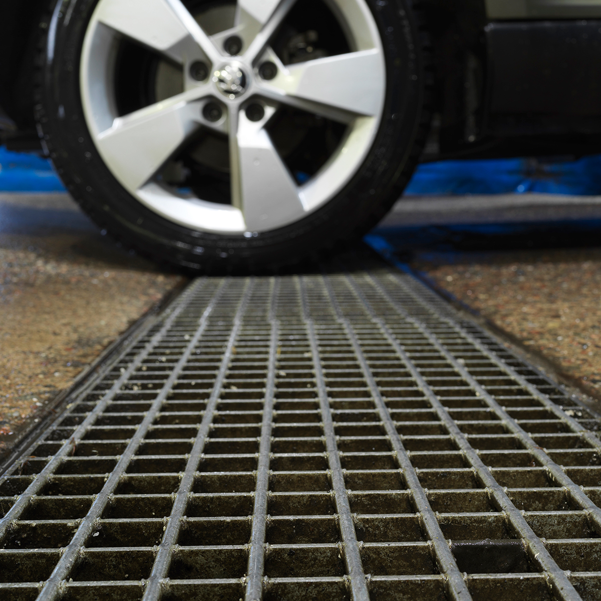 Befahrbares Gitterrost für PKW mit einem maximalen Gesamtgewicht von 3 Tonnen.
