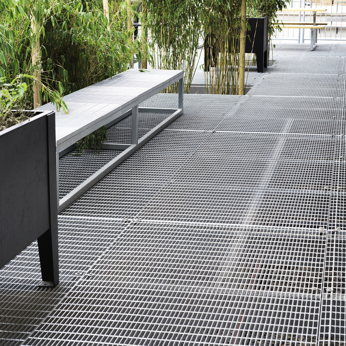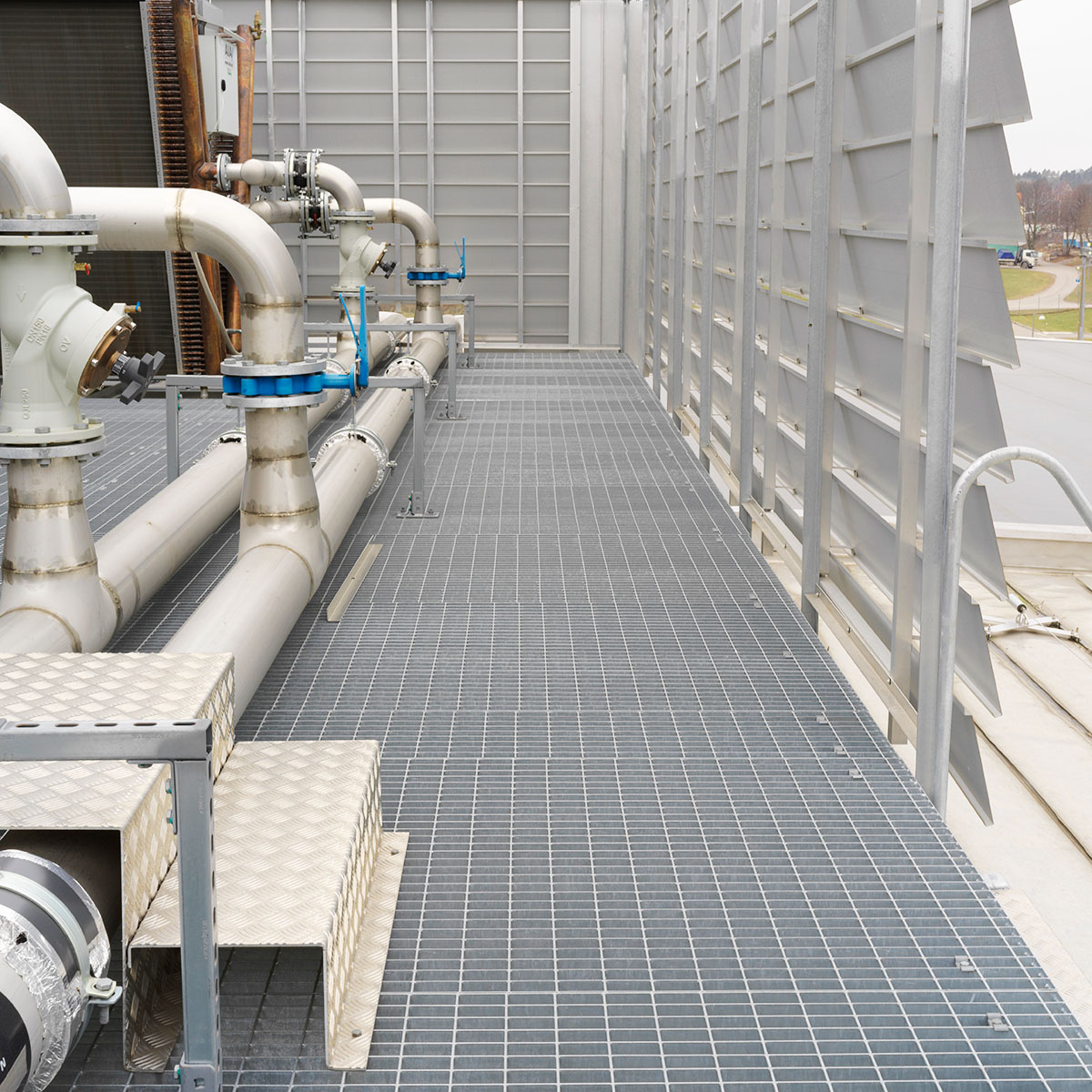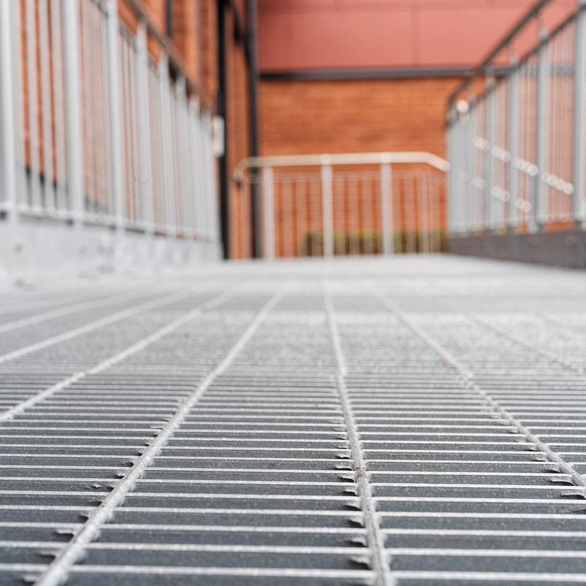 Laufroste in lagergeführten Formaten sind leicht handzuhaben, wodurch sie schnell und einfach montiert werden können. Kantenstäbe müssen weder abgelängt noch geschweißt werden.