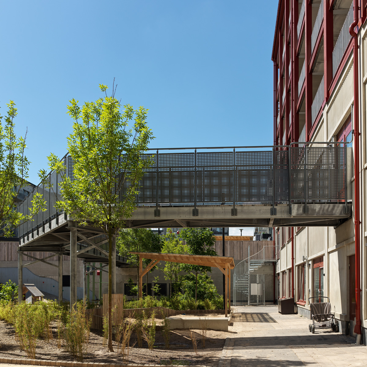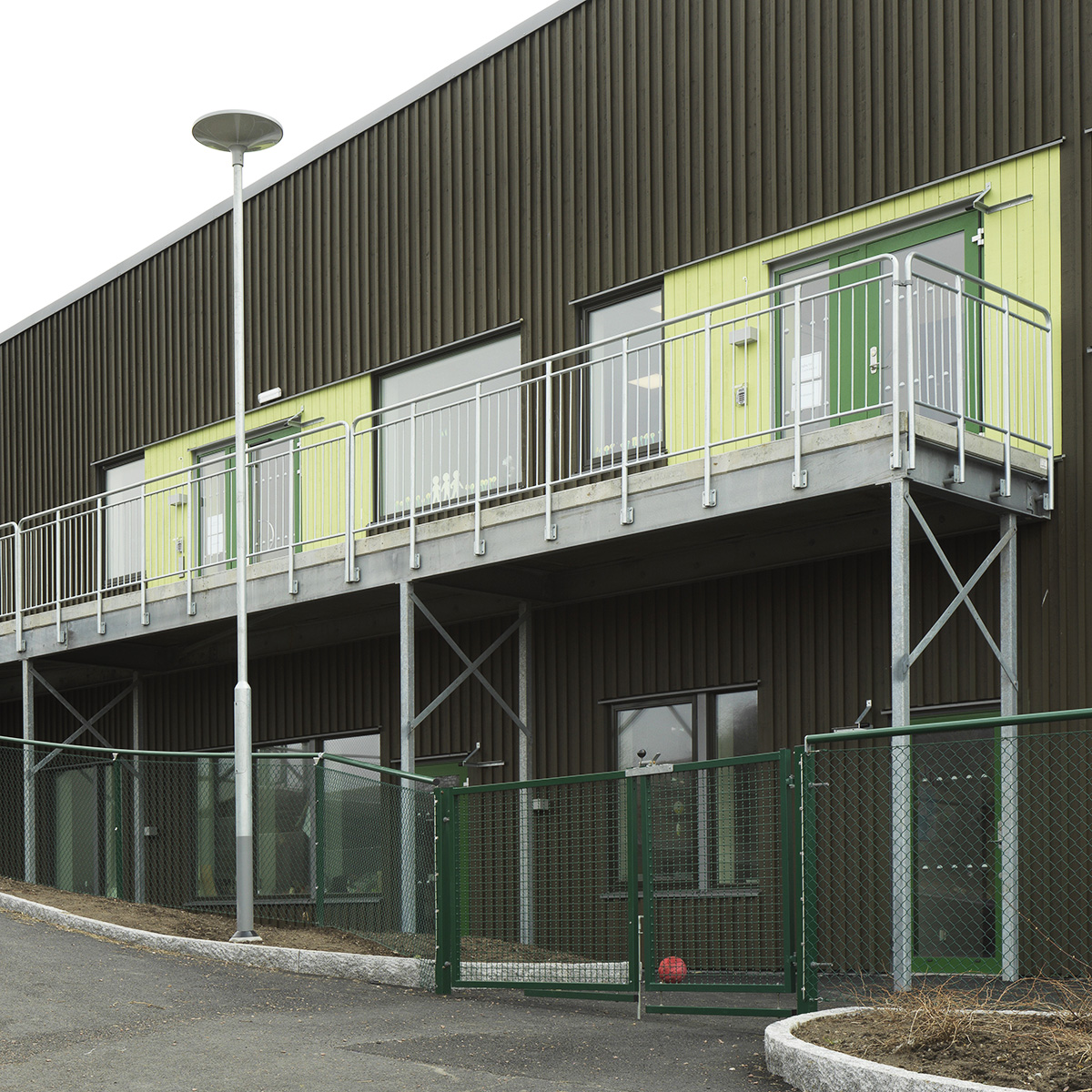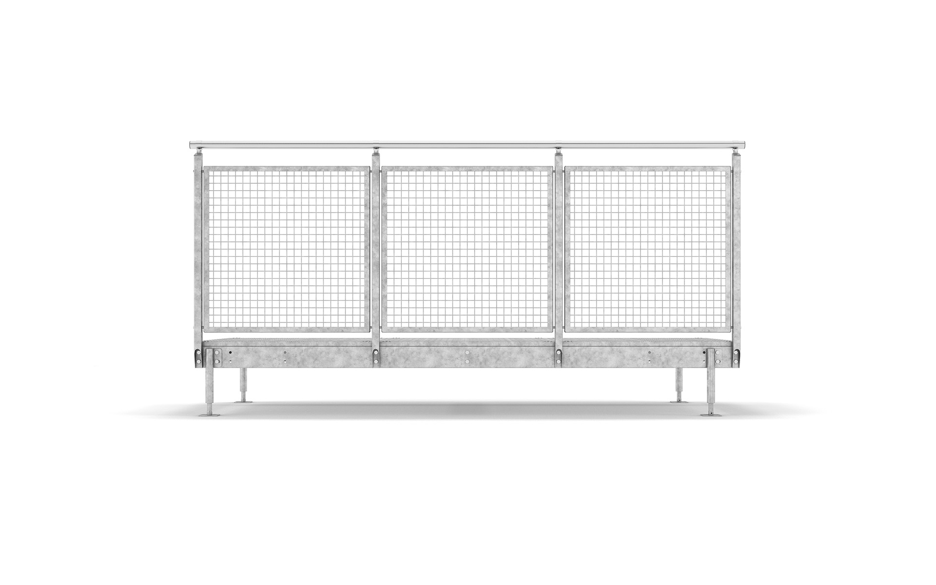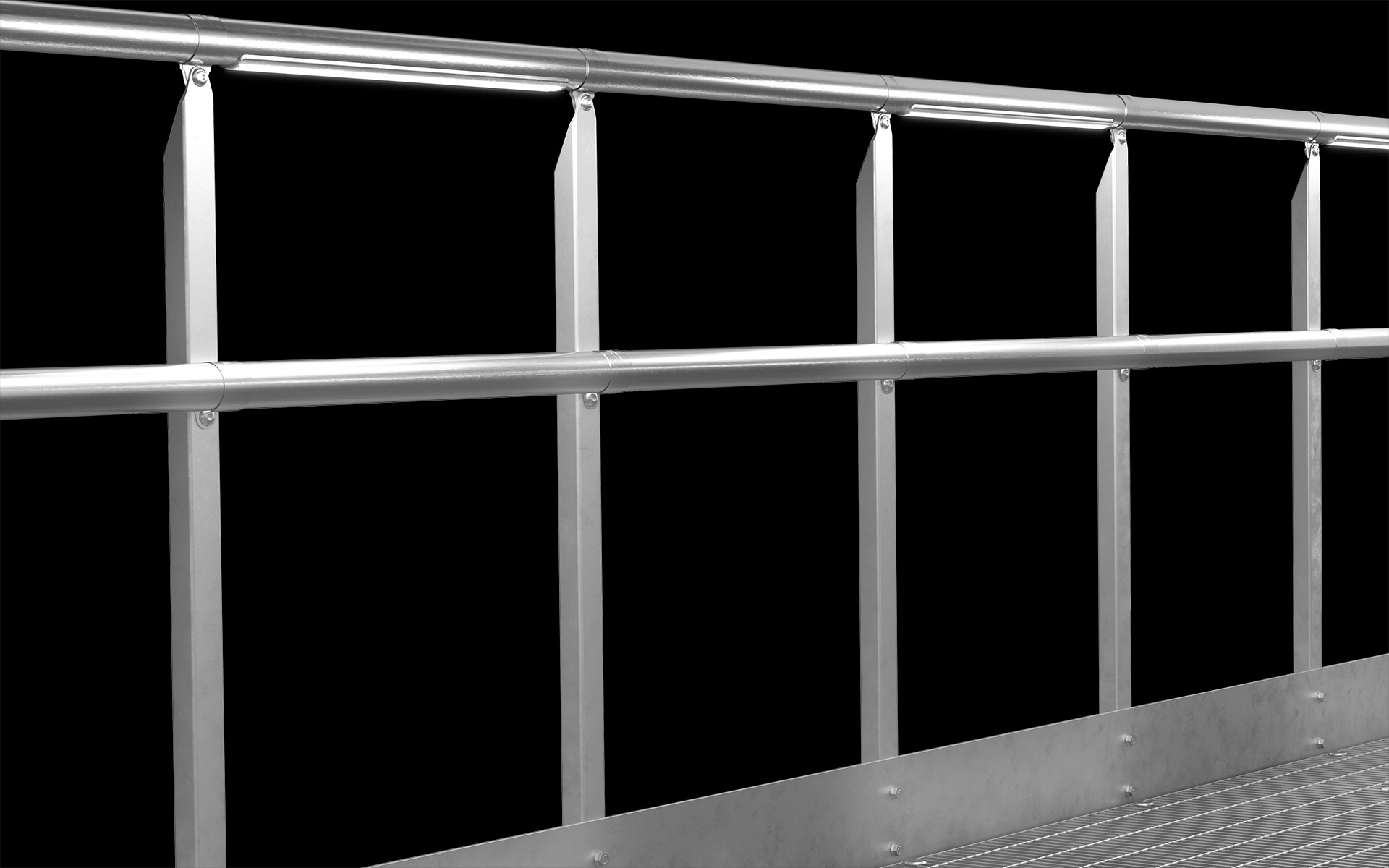 Das industrielle Geländer wird mit einer Knieleiste versehen. Es gilt nicht als kindersicher. Optional kann dieser Typ