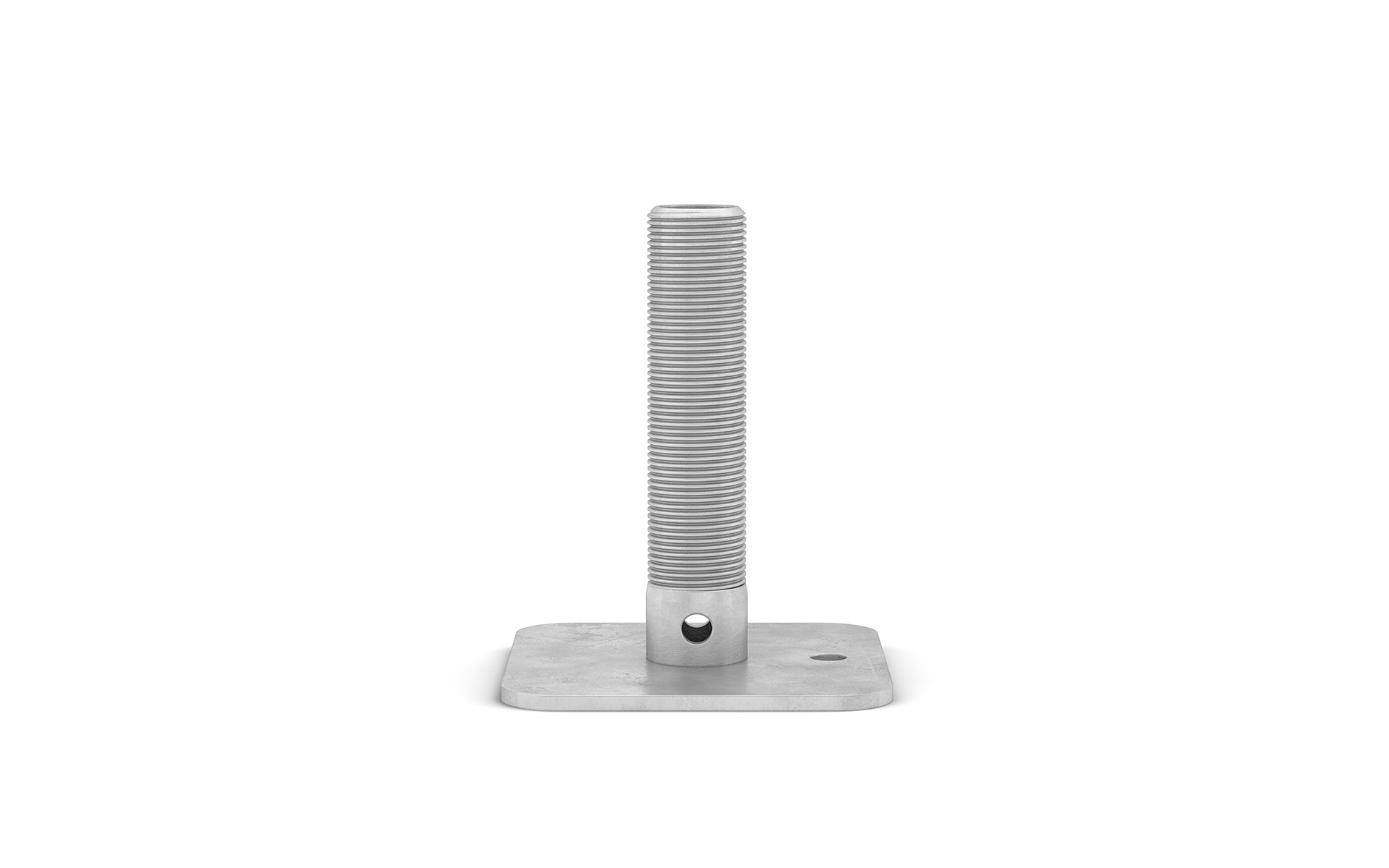 Zum runden Stützbein gibt es Fußplatten mit den Abmessungen 100 x 100 mm.