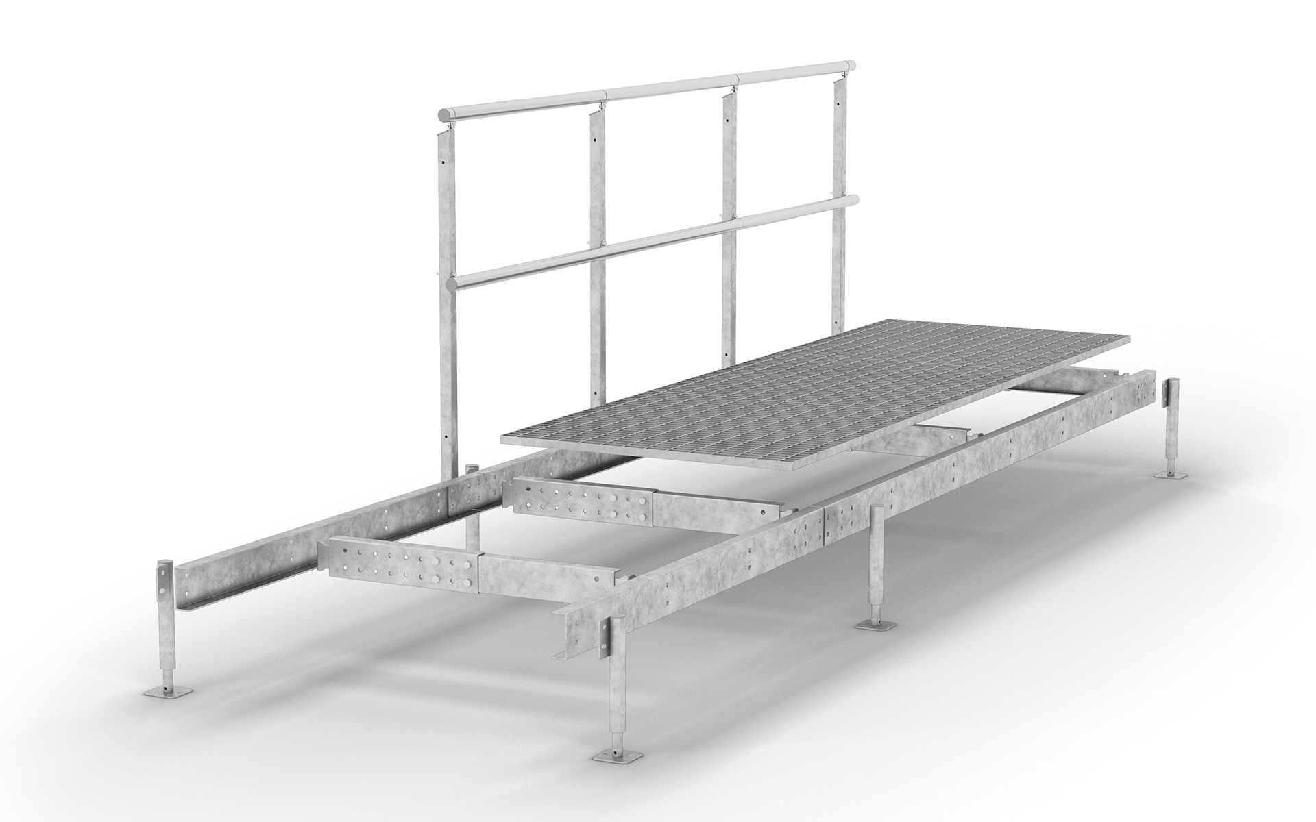 Die Befestigung kann auf vorhandenen Konsolen oder Trägern oder alternativ mit einstellbaren Stützbeinen erfolgen. Der maximale Abstand zwischen den Auflagen beträgt max. drei Meter.