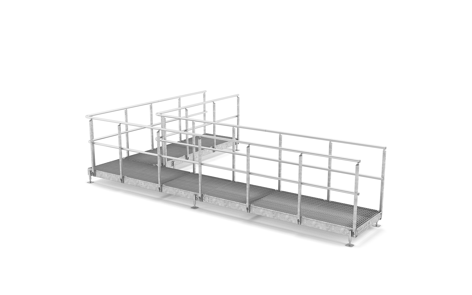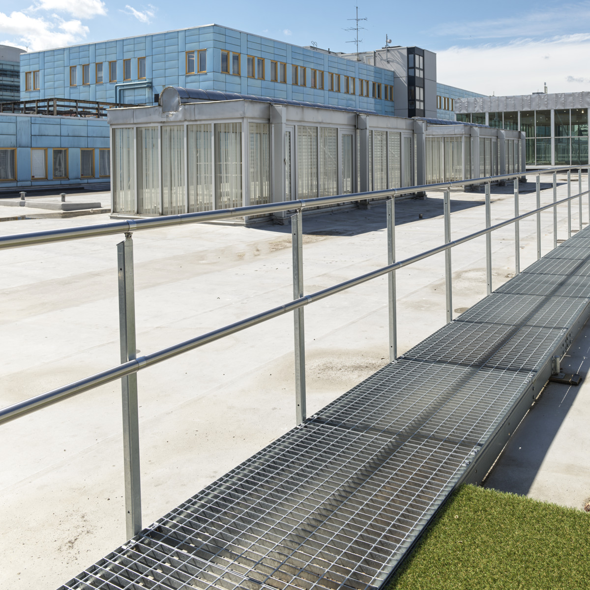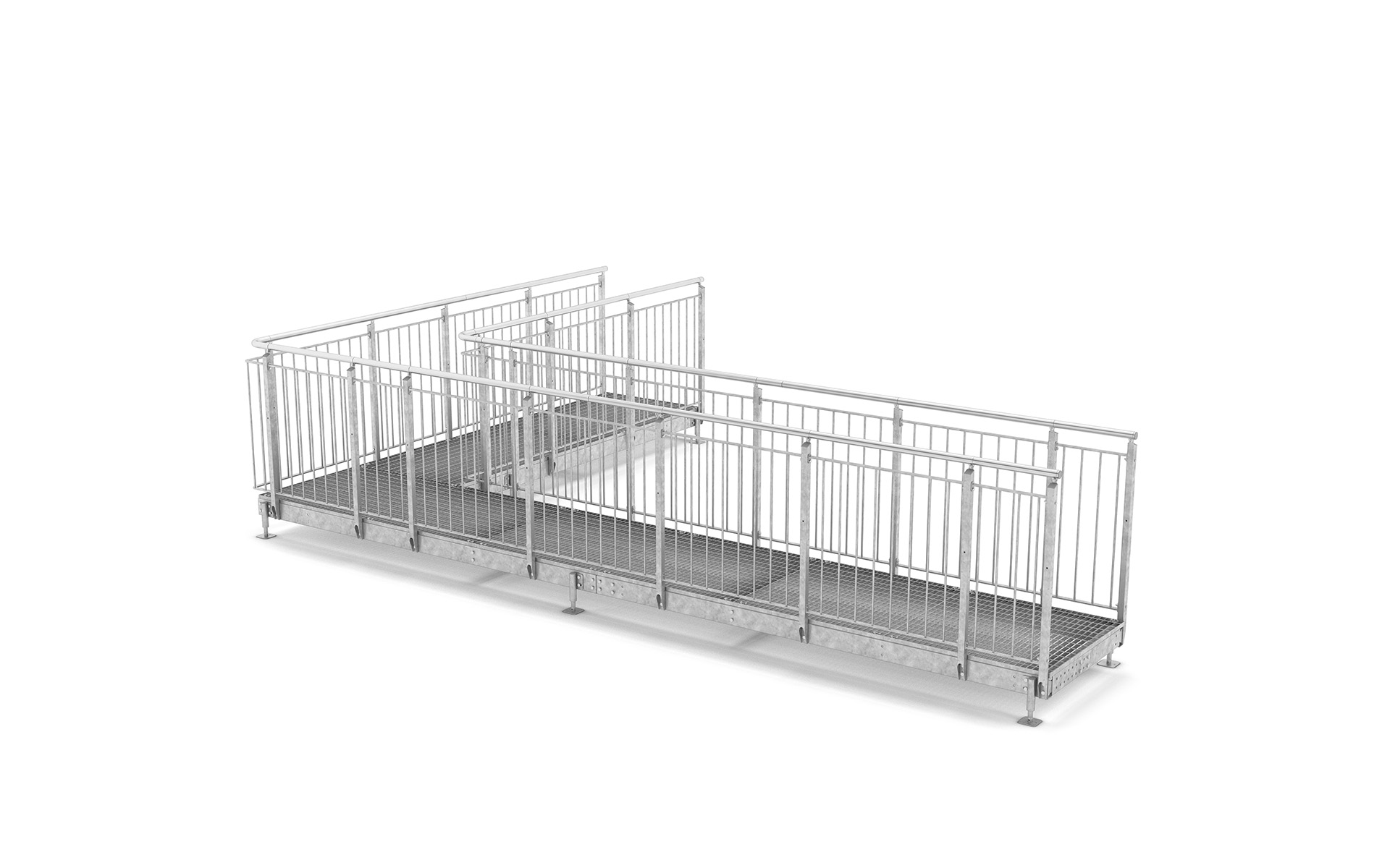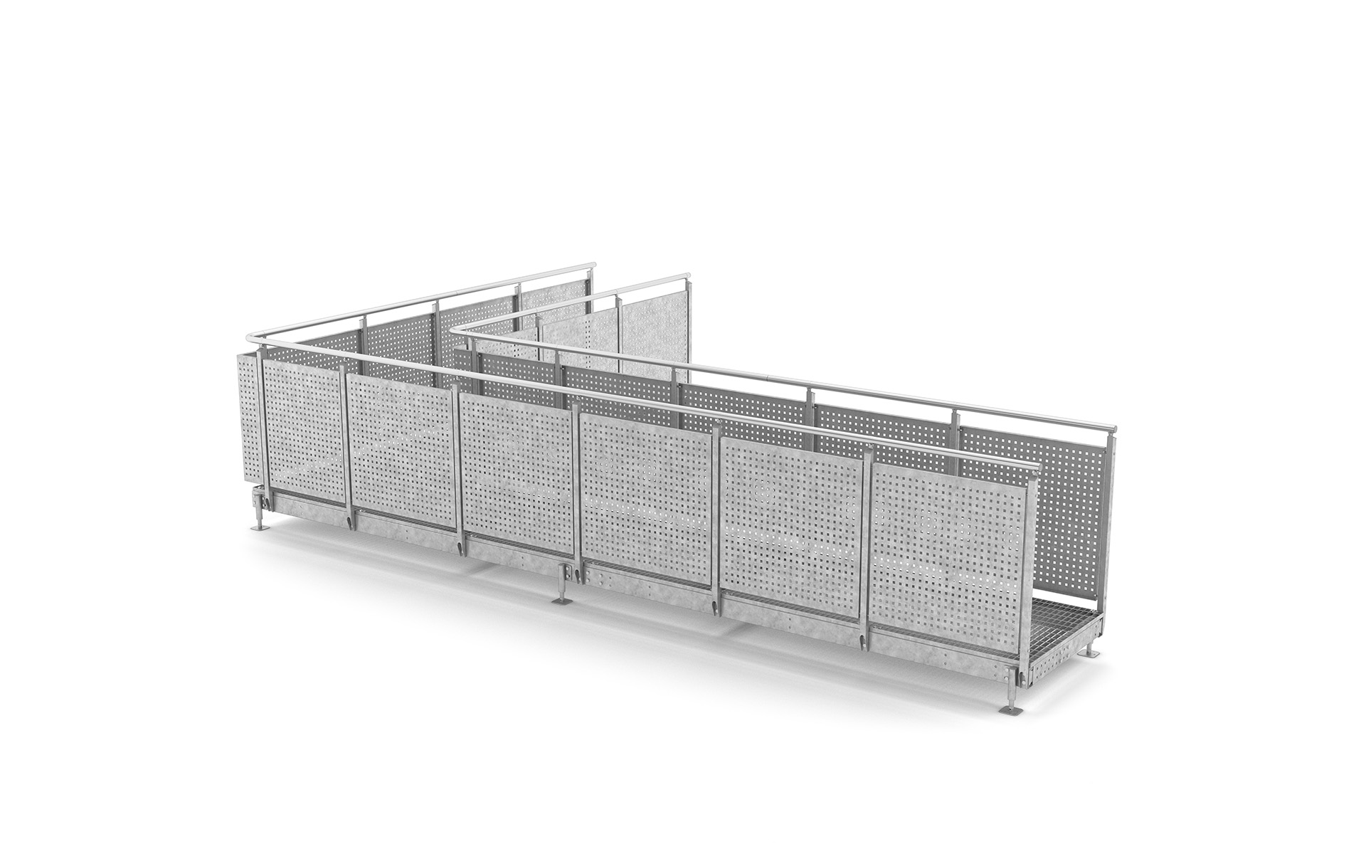 Die Flächen der Laufbeläge bestehen aus Gitterrosten und sind in verschiedenen Maschenweiten erhältlich, wobei aber auch dichtere Materialien, wie beispielsweise Blechprofilroste, angeboten werden können.