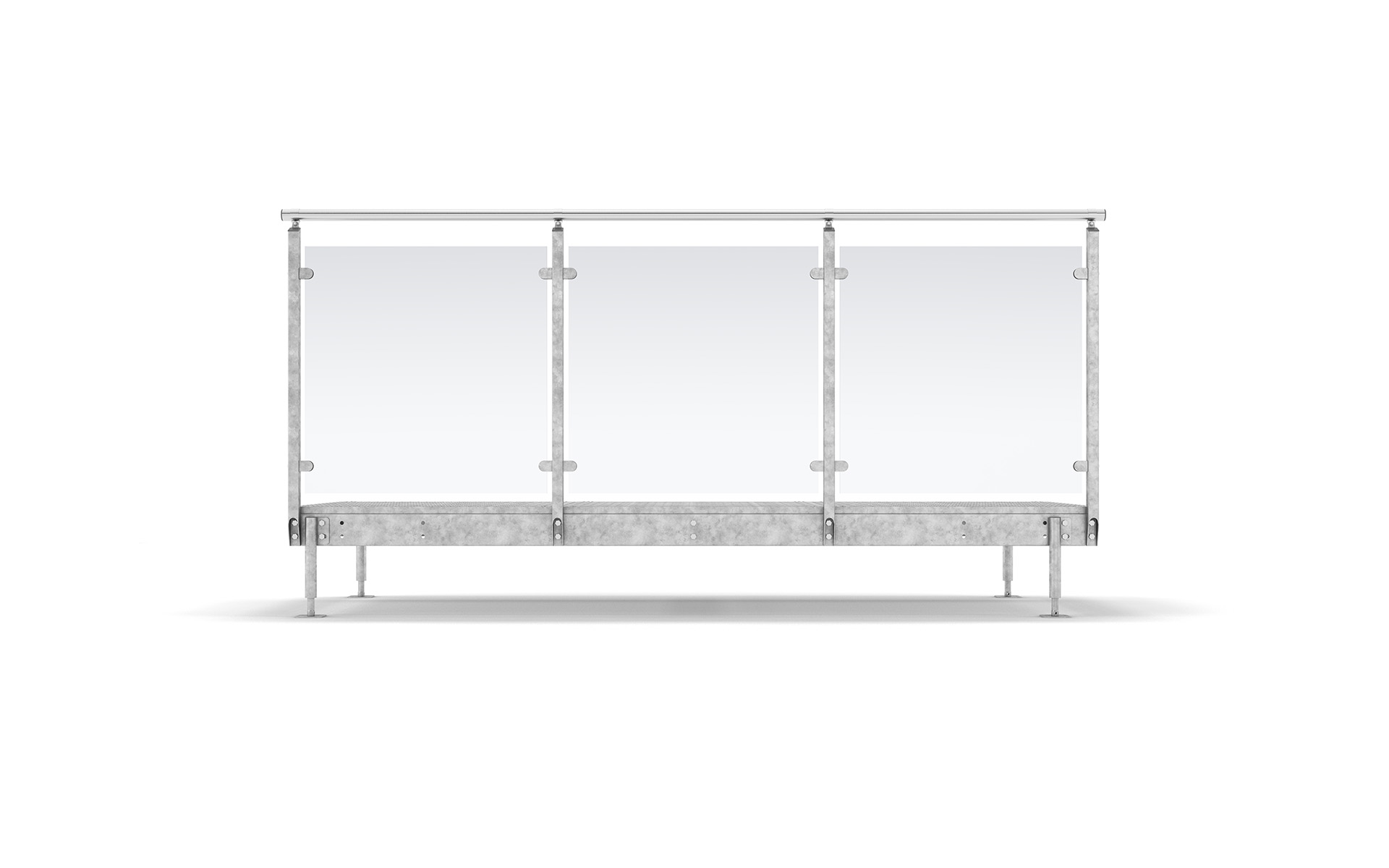 Füllung aus 8-mm-Lamellenglas (4+4) inkl. Folie. Die Kante ist rundum fein geschliffen. Die Klemmhalterungen für die Geländerpfosten sind im Lieferumfang enthalten.