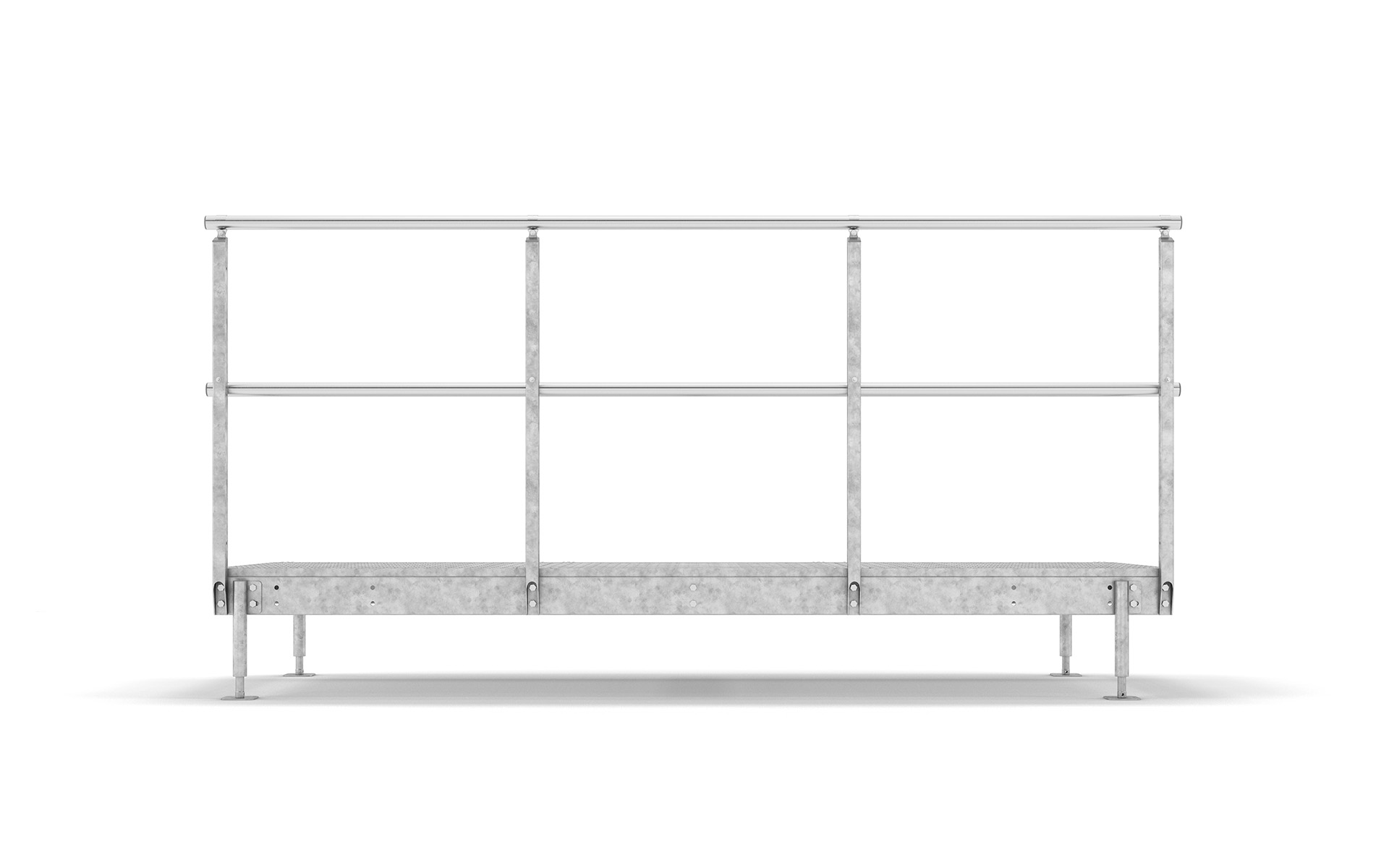 Die Fußleiste mit einer Höhe von 130 mm kann an der Laufbahn montiert werden. Die Fußleiste verhindert, dass Gegenstände von der Laufbrücke herunterfallen. Die Montage erfolgt mit oder ohne Geländer.