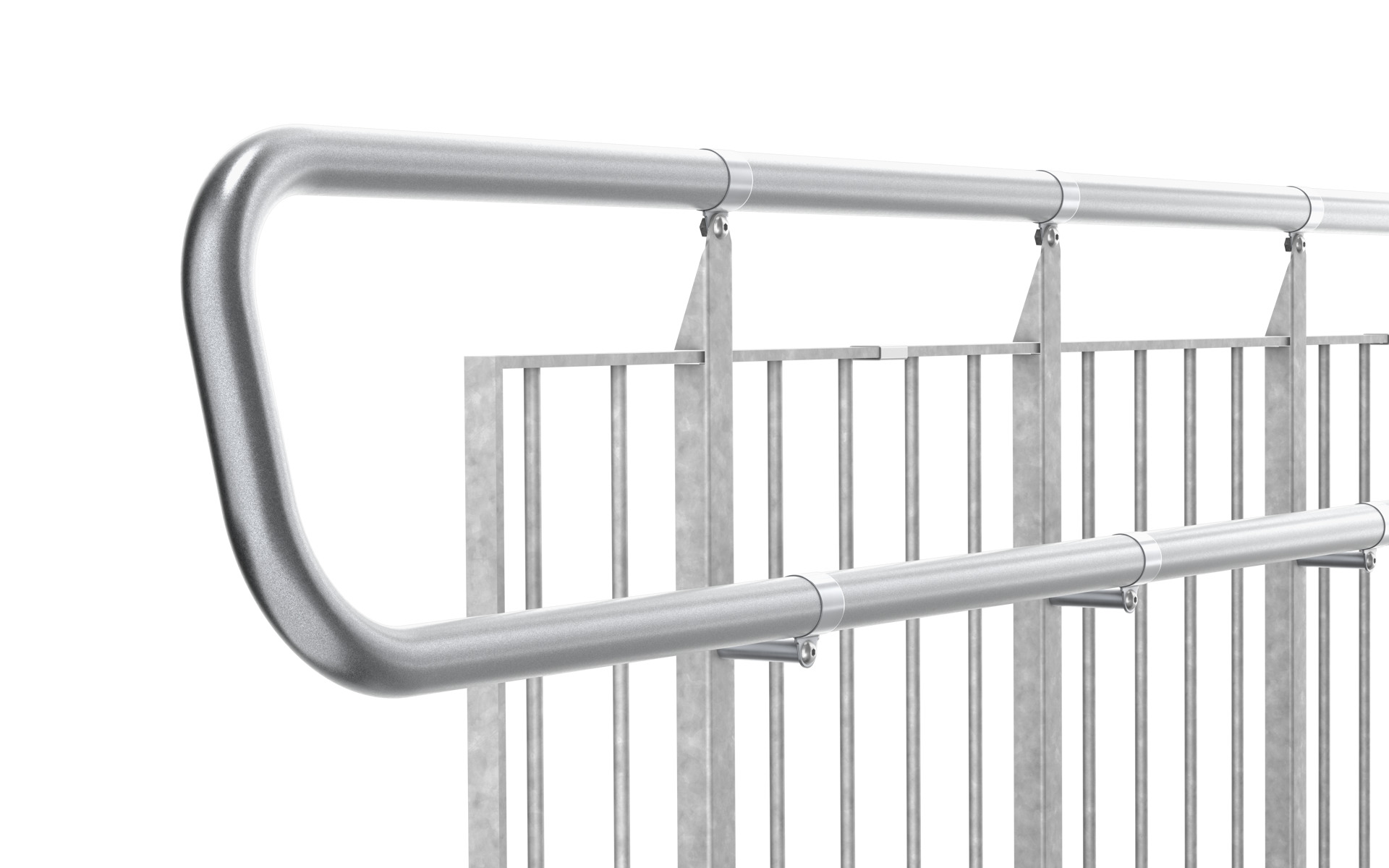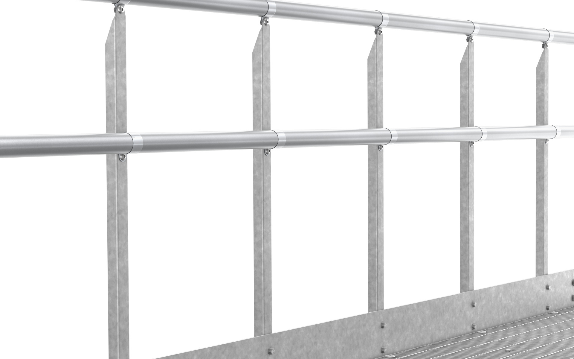 Ein lagergeführtes Standardgeländer mit Pfosten c/c 500 mm.