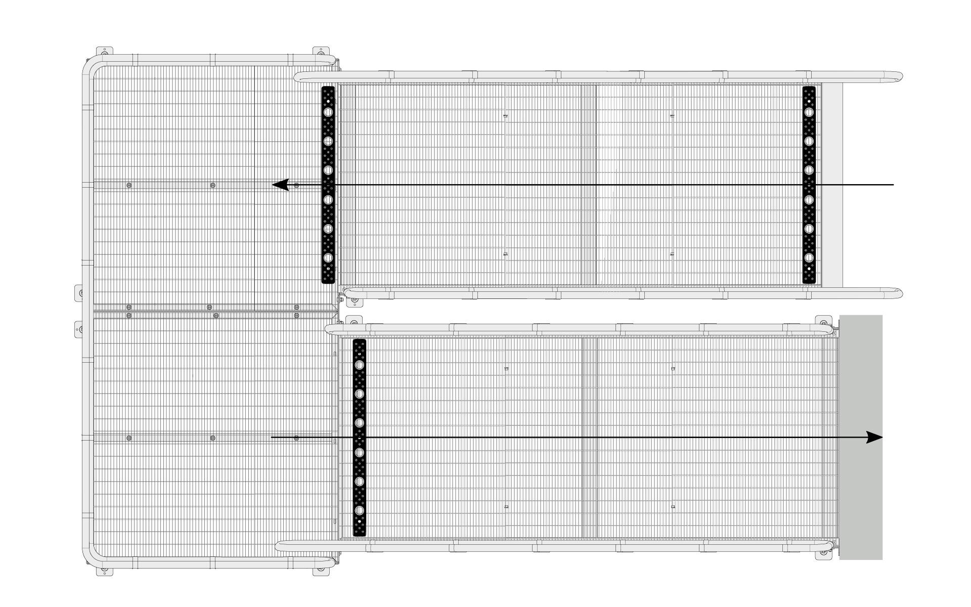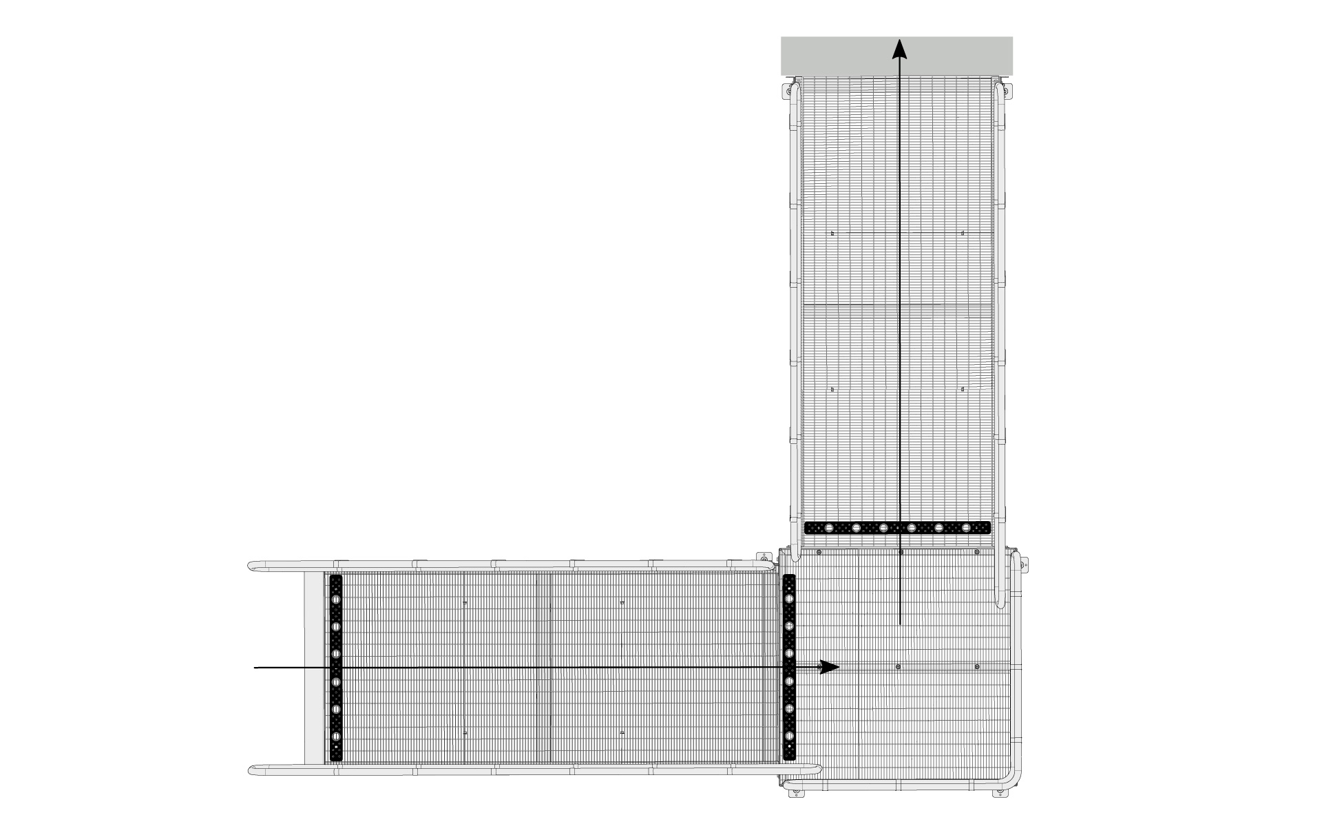 Rampen mit Absatz 90°, eine Seite des Absatzes wird an einer Wand befestigt.