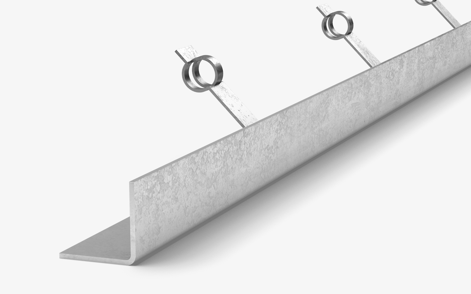 Der Kantenschutz ist ein warm gewalztes Profil mit angeschweißten Winkelklammern.